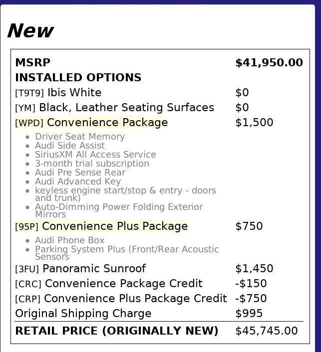Synthetic oil change,New tires.Convenience pkg,Convenience plus pkg.