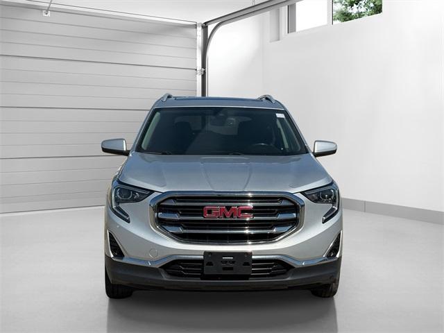 Silver 2020 GMC Terrain SLT 9-Speed Automatic 2.0L Turbocharged Terrain SLT, 2.0L Turbocharged, AWD, Silver, Leather, 2 USB Data Ports, 2 USB Data Ports w/SD Card Reader, 6-Speaker Audio System Feature, Adaptive Cruise Control - Camera, Air Conditioning, Apple CarPlay/Android Auto, Automatic temperature control, Bluetooth® For Phone, Exterior Parking Camera Rear, HD Radio, Heated front seats, Lane Departure Warning System, Preferred Equipment Group 4SA, Premium 7-Speaker Bose Sound System w/Amplifier, Radio: GMC Infotainment Audio System w/8 Display, Radio: GMC Infotainment Audio System w/Navigation, Rear Park Assist, SiriusXM Radio, Skyscape Power Sunroof w/Power Sunscreen, Steering wheel mounted audio controls, Wheels: 18 x 7 Machined Aluminum w/Gray Accents. 21/26 City/Highway MPG