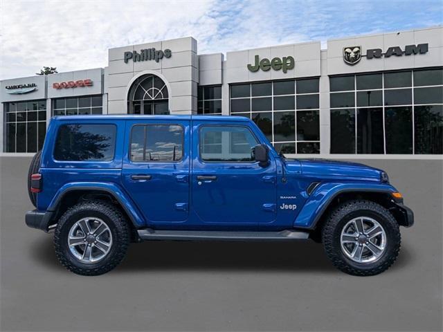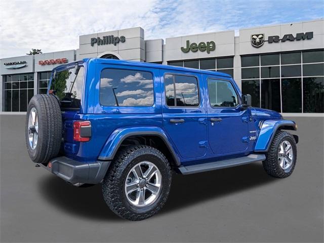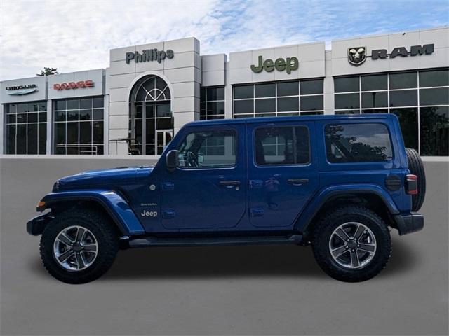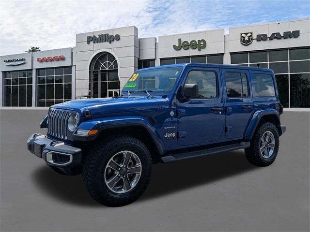 Certified. 2020 Jeep Wrangler Unlimited Sahara Ocean Blue Metallic Clearcoat Odometer is 7666 miles below market average! AutoCheck Accident Free, Body Color 3-Piece Hard Top, LED Lighting Group. Phillips Chrysler Jeep Dodge RAM... where people, product and price make the difference! FCA US LLC Certified Pre-Owned Details: * Warranty Deductible: $100 * Limited Warranty: 3 Month/3,000 Mile (whichever comes first) after new car warranty expires or from certified purchase date * Powertrain Limited Warranty: 84 Month/100,000 Mile (whichever comes first) from original in-service date * Transferable Warranty * Vehicle History * Roadside Assistance * 125 Point Inspection * Vehicles Up to 75,000 Miles and/or 5 Model Years. 24-Hour Towing & Roadside Assistance, Car Rental Allowance, CARFAX® Vehicle History ReportTM and an Introductory 3-month Subscription to SiriusXM® Satellite Radio & Certified Warranty Upgrades