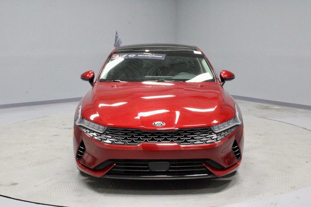 The 2021 Kia K5 EX is a sleek midsize sedan that blends turbocharged performance with upscale comfort. Its 1.6L turbocharged engine and 8-speed automatic transmission deliver responsive efficiency, while a refined ride makes every drive enjoyable. Inside, the cabin is appointed with heated and ventilated front seats, leatherette seating, panoramic sunroof, and a 10.25-inch touchscreen with navigation, Apple CarPlay, and Android Auto. Safety is a priority with Kia Drive Wise technologies, including Forward Collision-Avoidance Assist, Blind-Spot Collision-Avoidance, and Lane Keeping Assist. Find it today at Ricart Automotive Used Car Factory.Kia Certified Pre-Owned Details: * Transferable Warranty * Roadside Assistance * Warranty Deductible: $50 * 165 Point Inspection * Limited Warranty: 12 Month/12,000 Mile (whichever comes first) ''Platinum Coverage'' from certified purchase date * Includes Rental Car and Trip Interruption Reimbursement. 3 month Sirius trial subscription * Vehicle History * Powertrain Limited Warranty: 120 Month/100,000 Mile (whichever comes first) from original in-service datePassion Red 2021 Kia K5 EX 4D Sedan 1.6L I4 DGI 27/37 City/Highway MPG 8-Speed Automatic FWDExperience Hassle-Free Shopping at Ricart:- Premium Quality Assurance: Rest assured with our meticulous vehicle reconditioning, averaging over $1300 per car, ensuring your peace of mind when purchasing an used vehicle.- Express Checkout for Time Efficiency: Streamline your purchase process by completing most of the deal remotely, whether from the comfort of your workplace or home, saving you valuable time.- Unmatched Transparency: Prior to your purchase, gain full visibility into the service history of the vehicle, ensuring complete transparency and confidence in your decision.- Competitive Pricing: We recognize the extensive research done by shoppers, hence we offer highly competitive prices online to match your needs and expectations.- Exceptional Service by Exceptional People: Surround yourself with a team of friendly experts ready to address any inquiries. Recognized as one of the top workplaces for the past decade, Ricart ensures you enjoy great company throughout your vehicle purchase journey!