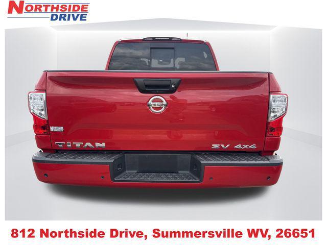 Odometer is 4611 miles below market average!4WD.2021 Nissan Titan SV Northside Chrysler Dodge Jeep RAM Fiat is honored to offer this wonderful 2021 Nissan Titan SV in Red Alert, beautifully equipped with Off Road Protection Package (All Season Floor Mats), SV Convenience Package (110V/12V Outlets In Back Of Center Console, 2 Illuminated USB-A Ports In Back Of Center Console, Auto-Dimming Rear-View Mirror, Chrome Interior Door Locks, Convex Spotter Mirror, Dedicated Cell Phone Holder, Dual Zone Automatic HVAC, Front & Rear Parking Sensors, Heated Front Captain's Chairs, Intelligent Key System, Leather-Wrapped Steering Wheel, Power Sliding Rear Window w/Defogger, Radio: NissanConnect w/Navigation, Rear HVAC Vents, Remote Engine Start on Key Fob, and Traffic Sign Recognition (TSR)), 4WD, 3.692 Axle Ratio, 4-Wheel Disc Brakes, 6 Speakers, ABS brakes, Air Conditioning, Alloy wheels, AM/FM radio: SiriusXM, Auto High-beam Headlights, Blind Spot Warning, Brake assist, Bumpers: chrome, Carpet Floor Mats (L95), Cloth Seat Trim, Driver door bin, Driver vanity mirror, Dual front impact airbags, Dual front side impact airbags, Electronic Stability Control, Emergency communication system: NissanConnect Services, Front anti-roll bar, Front Center Armrest w/Storage, Front reading lights, Front Split Bench Seat (40/20/40), Front wheel independent suspension, Fully automatic headlights, Heated door mirrors, Illuminated entry, Knee airbag, Loop Side Steps, Low tire pressure warning, NissanConnect featuring Apple CarPlay and Android Auto, Occupant sensing airbag, Outside temperature display, Overhead airbag, Overhead console, Panic alarm, Passenger door bin, Passenger vanity mirror, Power door mirrors, Power steering, Power windows, Radio data system, Radio: NissanConnect AM/FM, Rear anti-roll bar, Rear Parking Sensors, Rear seat center armrest, Rear step bumper, Rear window defroster, Remote keyless entry, Security system, Speed control, Speed-sensing steering, Speed-Sensitive Wipers, Splash Guards, Split folding rear seat, Steering wheel mounted audio controls, Tachometer, Telescoping steering wheel, Tilt steering wheel, Traction control, Trip computer, Variably intermittent wipers, Voltmeter, Wheels: 18'' x 8'' Silver Painted Alloy, and Wheels: 20'' x 8'' Chrome!At our dealership, we have devoted ourselves to helping and serving our customers to the best of our ability. We believe the cars we offer are the highest quality and ideal for your life needs. We understand that you rely on our web site for accurate information, and it is our pledge to deliver you relevant, correct, and abundant content. Please do not hesitate to contact us with any questions you may have. Our staff is happy to answer any and all inquiries in a timely fashion. We look forward to doing business with you!