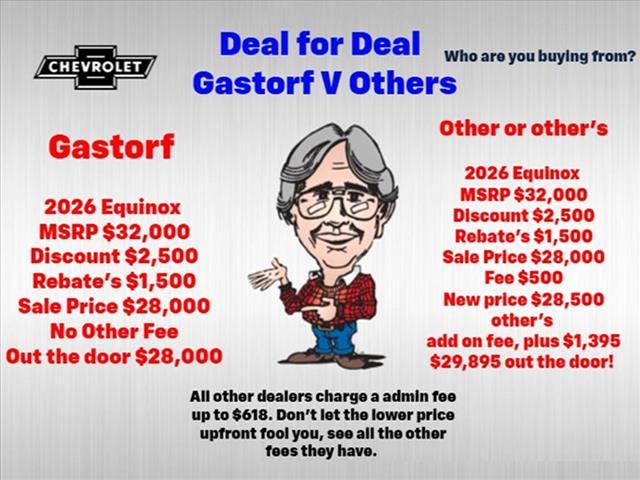 View salespeople at this dealershipWe strive to provide our customers with accurate, real rebates and discounts on our vehicles on Gastorf.com. In the event you are unsure if you qualify for a rebate, please contact us so we can clarify for you at 636-456-3318. There are so many private offers and discounts out there we can not display all of them on our site. GM Employee have special price. Please call so we can look up your info to see what you qualify for. Some vehicles will have tint or strips on them we will add that price. WE DON'T SHOW REBATES THAT ONLY A LOW % WILL GET / SO READ OTHERS AND YOU WILL SEE GASTORF IS A TRUE PRICE