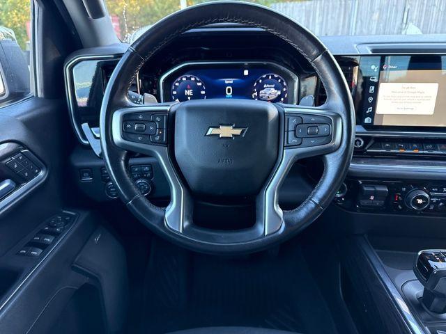 CARFAX One-Owner. Clean CARFAX. 2022 Chevrolet Silverado 1500 LTZ 4WD 10-Speed Automatic EcoTec3 5.3L V8 Black 10-Speed Automatic, 4WD, Jet Black Leather. THIS VEHICLE INCLUDES THE FOLLOWING FEATURES AND OPTIONS: High Capacity Suspension Package, LTZ Convenience Package (2 USB Data Ports, Floor Mounted Center Console, Power Tilt & Telescoping Steering Column, Premium Bose 7-Speaker Sound System, Ventilated Driver & Front Passenger Seats, and Wireless Charging), LTZ Convenience Package II (2nd Row Heated Outboard Seats, Adaptive Cruise Control, Power Sliding Rear Window w/Rear Defogger, and Universal Home Remote), LTZ Plus Package, LTZ Premium Package (Power Sunroof), Preferred Equipment Group 1LZ (10-Way Power Driver Seat w/Lumbar, 10-Way Power Passenger Seat Adjuster w/Lumbar, 12.3 Multicolor Reconfigurable Digital Display, 120-Volt Bed Mounted Power Outlet, 120-Volt Instrument Panel Power Outlet, Auto-Dimming Inside Rear-View Mirror, Auto-Locking Rear Differential, Bluetooth® For Phone, Chevrolet Connected Access Capable, Chrome Mirror Caps, Color-Keyed Carpeting Floor Covering, Compass, Deep-Tinted Glass, Driver Memory, Dual Rear USB Ports (Charge Only), Electric Rear-Window Defogger, Electrical Steering Column Lock, Electronic Cruise Control, Front Frame-Mounted Black Recovery Hooks, Front LED Fog Lamps, Front Rainsensing Wipers, Front Rubberized Vinyl Floor Mats, Heated Driver & Front Outboard Passenger Seats, Heated Steering Wheel, Hitch Guidance w/Hitch View, Integrated Trailer Brake Controller, Keyless Open & Start, Leather Wrapped Steering Wheel, LED Cargo Area Lighting, OnStar & Chevrolet Connected Services Capable, Outside Heated Power-Adjustable Mirrors, Power Front Passenger Windows w/Express Up/Down, Power Front Windows w/Driver Express Up/Down, Power Rear Windows w/Express Down, Power Tailgate, Rear Rubberized-Vinyl Floor Mats, Rear Wheelhouse Liners, Remote Vehicle Starter System, SiriusXM w/360L, Standard Tailgate, Steering Wheel Audio Controls, Theft Deterrent System (Unauthorized Entry), Trailering App, Wi-Fi Hot Spot Capable, and Wireless Phone Projection), Safety Package (HD Surround Vision, Perimeter Lighting, Rear Cross Traffic Alert-Braking, Rear Pedestrian Detection, Safety Alert Seat, Trailer Camera Provisions, Trailer Side Blind Zone Alert, and Ultrasonic Front & Rear Park Assist), Trailering Package (Hitch Guidance), Up-Level Rear Seat w/Storage Package, Z71 Off-Road & Protection Package (All-Weather Floor Liner (LPO) (AAK) and Chevytec Spray-On Black Bedliner), Z71 Off-Road Package (Dual Exhaust w/Polished Outlets, Heavy-Duty Air Filter, Hill Descent Control, and Off-Road Suspension), 10-Speed Automatic, 4WD, Jet Black Leather, 170 Amp Alternator, 3.23 Rear Axle Ratio, 4-Wheel Disc Brakes, 7 Speakers, ABS brakes, Air Conditioning, Alloy wheels, AM/FM radio: SiriusXM with 360L, Apple CarPlay/Android Auto, Auto High-beam Headlights, Auto-dimming door mirrors, Auto-dimming Rear-View mirror, Automatic Emergency Braking,