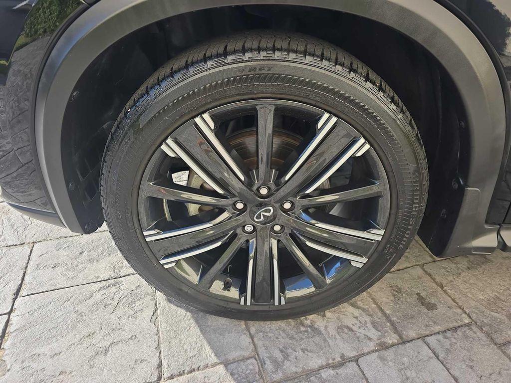 APPEARANCE PACKAGE Black Liftgate Finisher, Wheels: 20 Black and Machine Finished, Heated Outside Mirrors, Black Front Grille Surround, Black Grille Mesh, Graphite Headliner, Tires: 255/45R20 All-Season Run-Flat, Black Front Fender Accent, Body Color Rear Diffuser, Black Outside Mirror Caps, ILLUMINATED KICK PLATES, BLACK SPLASH GUARDS (SET OF 4). INFINITI LUXE with Black Obsidian exterior and Graphite interior features a 4 Cylinder Engine with 268 HP at 5600 RPM*. Non-Smoker vehicle, Remainder of Factory Warranty