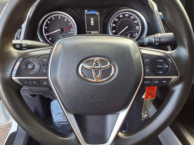 This 2022 White Toyota Camry LE FWD is well equipped and includes these features and benefits: Ash Cloth, 4-Wheel Disc Brakes, 6 Speakers, 7.5J x 17' Alloy Wheels, ABS brakes, Air Conditioning, Alloy wheels, AM/FM radio: SiriusXM, Apple CarPlay/Android Auto, Auto High-beam Headlights, Automatic temperature control, Brake assist, Bumpers: body-color, Delay-off headlights, Driver door bin, Driver vanity mirror, Dual front impact airbags, Dual front side impact airbags, Electronic Stability Control, Emergency communication system: Safety Connect with 1-year trial, Exterior Parking Camera Rear, Fabric Seat Trim, Four wheel independent suspension, Front anti-roll bar, Front Bucket Seats, Front Center Armrest, Front dual zone A/C, Front reading lights, Fully automatic headlights, Illuminated entry, Knee airbag, Low tire pressure warning, Occupant sensing airbag, Outside temperature display, Overhead airbag, Overhead console, Panic alarm, Passenger door bin, Passenger vanity mirror, Power door mirrors, Power driver seat, Power steering, Power windows, Radio data system, Radio: AM/FM Audio System, Rear anti-roll bar, Rear seat center armrest, Rear side impact airbag, Rear window defroster, Remote keyless entry, Security system, Speed control, Speed-sensing steering, Split folding rear seat, Steering wheel mounted audio controls, Tachometer, Telescoping steering wheel, Tilt steering wheel, Traction control, Trip computer, and Variably intermittent wipers. Ash Cloth. Priced below KBB Fair Purchase Price! CARFAX One-Owner. Odometer is 14999 miles below market average!Call us now or stop by our showroom on 17th street and Santa Monica Blvd. We are located at 1717, Santa Monica Blvd, California 90404. Come see our ample selection of new and pre-owned cars, trucks, and SUVs. Rest assured that we will find the right vehicle that checks all your boxes at a competitive price!