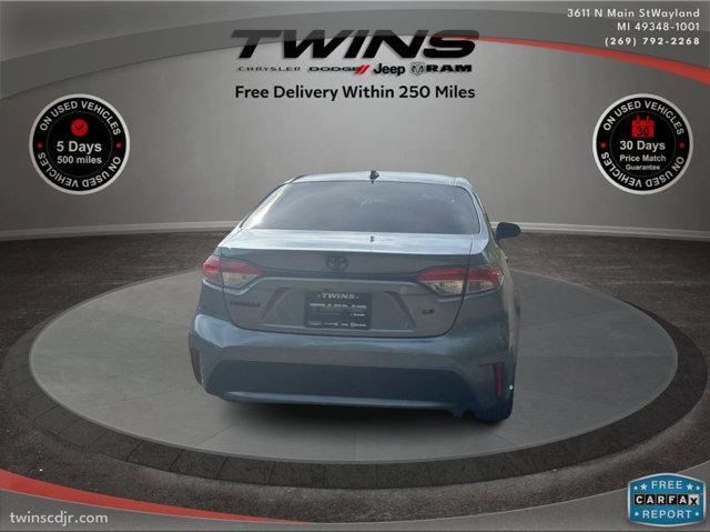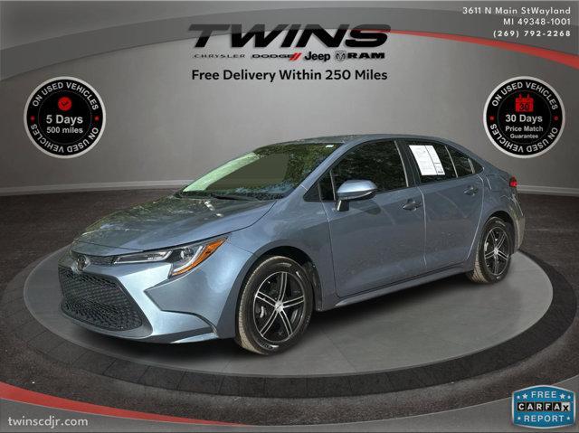 Carfax and Autocheck accident free.Wi-Fi Connect with up to 2GB within Mobile Hotspot Internet Access, Wheels: 16' Wide Vent Steel, Wheels w/Full Wheel Covers, Variable Intermittent Wipers, Urethane Gear Shifter Material, Trunk Rear Cargo Access, Trip Computer, Transmission: Continuously Variable (CVTi-S), Tires: P205/55R16 All-Season, Strut Front Suspension w/Coil Springs. This Toyota Corolla has a dependable Regular Unleaded I-4 1.8 L/110 engine powering this Variable transmission.*Experience a Fully-Loaded Toyota Corolla LE *Steel Spare Wheel, Single Stainless Steel Exhaust, Side Impact Beams, Seats w/Cloth Back Material, Safety Connect with Tracker System, Safety Connect with Emergency Sos Capability, Remote Releases -Inc: Mechanical Cargo Access and Mechanical Fuel, Remote Keyless Entry w/Integrated Key Transmitter, Illuminated Entry, Illuminated Ignition Switch and Panic Button, Rear Cupholder, Rear Child Safety Locks, Real-Time Traffic Display, Radio: Audio -inc: 8' touchscreen, 6 speakers, Android Auto, Apple Carplay, Amazon Alexa compatible, USB media port, 1 USB charge port, hands-free phone capability, music streaming via Bluetooth wireless technology, SiriusXM, See toyota.com/audio-multimedia for details, Connected Services - Safety Connect and Wi-Fi Connect w/up to 2 GB within, See toyota.com/connected-services for details, Radio w/Seek-Scan, Clock, Speed Compensated Volume Control, Steering Wheel Controls, Voice Activation and Radio Data System, Premium Fabric Seat Trim, Pre-Collision System (PCS), Power Rear Windows, Power Door Locks w/Autolock Feature, Power 1st Row Windows w/Front And Rear 1-Touch Up/Down, Perimeter Alarm, Passenger Seat.*Visit Us Today *A short visit to Twins Chrysler Dodge Jeep Ram located at 3611 N Main St, Wayland, MI 49348 can get you a tried-and-true Corolla today!*Seller Notes and Disclaimer: We honor all advertised prices. If you saw this vehicle listed on a third-party site (e.g., CarGurus, AutoTrader, Cars.com), please mention it so we can verify and match that price. *Although every reasonable effort has been made to ensure the accuracy of the information contained on this site, absolute accuracy cannot be guaranteed. Dealer is not responsible for errors and omissions. All vehicles are subject to prior sale. Price does not include applicable state sales tax, title, license plate, Title Fee ($16.00), CVR (Varies based upon location), Golden Plains Environmental Paint and Interior Protection ($499), LoJack Anti-Theft protection ($999), and Documentation Fee ($280) (This charge represents costs and profit to the dealer for items such as inspecting, cleaning, and adjusting vehicles, and preparing documents related to the sale).Visit our website to fill out an application for quick and easy approval. Thank you for considering Twins Chrysler Dodge Jeep Ram for your next vehicle purchase.*For more information, please visit our website: http//www.twinscdjr.com.*