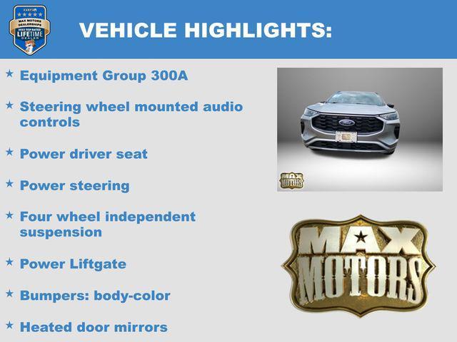 CARFAX One-Owner. Clean CARFAX.Iconic Silver Metallic 2023 Ford Escape ST-Line4D Sport Utility ST-Line AWD 1.5L EcoBoost26/32 City/Highway MPG 26/32 City/Highway MPGAWD, Bumpers: body-color, Equipment Group 300A, Four wheel independent suspension, Front Bucket Seats, Front reading lights, Heated door mirrors, Heated front seats, Heated steering wheel, Illuminated entry, Power driver seat, Power Liftgate, Power steering, Rear seat center armrest, Steering wheel mounted audio controls, Vinyl/Cloth Front Sport Contour Bucket Seats.At Max Motors, our mission is simple: to provide every customer with a honest, transparent, and rewarding automotive experience. For 19 years as a family-owned business, we build strong customer relationships that go beyond a sale. Buying a vehicle is significant, and we ensure the process is smooth and straightforward.