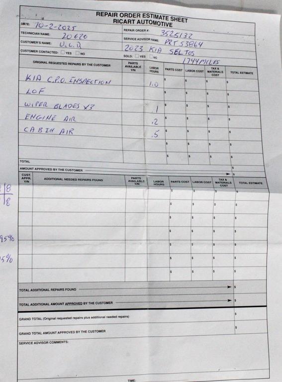 The 2023 Kia Seltos LX AWD offers confident all-weather capability with its 2.0L 4-cylinder engine, intelligent variable transmission, and all-wheel drive with center lock. Its practical design is complemented by a comfortable interior featuring an 8'' touchscreen, rear camera display, Apple CarPlay/Android Auto, Bluetooth, and remote keyless entry. Safety comes standard with Kia Drive Wise technology, including Forward Collision-Avoidance, Lane Keeping Assist, Lane Departure Warning, and High Beam Assist. With 17'' alloy wheels, LED headlights, and versatile cargo space, this Seltos is a smart and stylish choice. Available now at Ricart Automotive Used Car Factory.Recent Arrival! Clean CARFAX. CARFAX One-Owner. Odometer is 13010 miles below market average!Kia Certified Pre-Owned Details: * Vehicle History * Transferable Warranty * Limited Warranty: 12 Month/12,000 Mile (whichever comes first) ''Platinum Coverage'' from certified purchase date * 165 Point Inspection * Includes Rental Car and Trip Interruption Reimbursement. 3 month Sirius trial subscription * Warranty Deductible: $50 * Powertrain Limited Warranty: 120 Month/100,000 Mile (whichever comes first) from original in-service date * Roadside AssistanceNeptune Blue 2023 Kia Seltos LX 4D Sport Utility 2.0L I4 MPI 27/31 City/Highway MPG CVT AWDExperience Hassle-Free Shopping at Ricart:- Premium Quality Assurance: Rest assured with our meticulous vehicle reconditioning, averaging over $1300 per car, ensuring your peace of mind when purchasing an used vehicle.- Express Checkout for Time Efficiency: Streamline your purchase process by completing most of the deal remotely, whether from the comfort of your workplace or home, saving you valuable time.- Unmatched Transparency: Prior to your purchase, gain full visibility into the service history of the vehicle, ensuring complete transparency and confidence in your decision.- Competitive Pricing: We recognize the extensive research done by shoppers, hence we offer highly competitive prices online to match your needs and expectations.- Exceptional Service by Exceptional People: Surround yourself with a team of friendly experts ready to address any inquiries. Recognized as one of the top workplaces for the past decade, Ricart ensures you enjoy great company throughout your vehicle purchase journey!