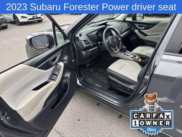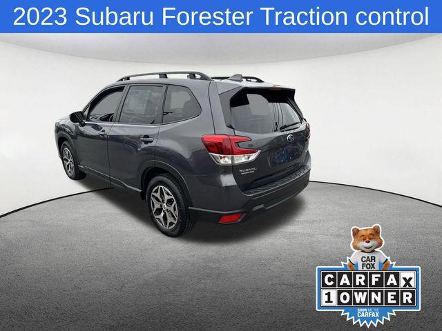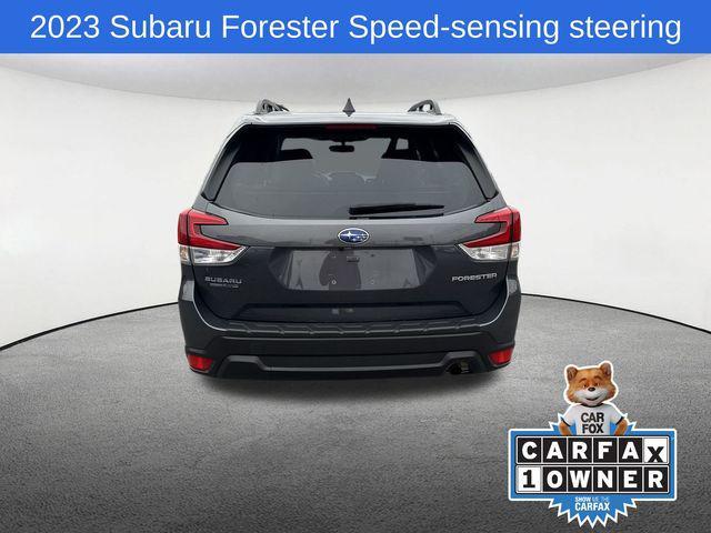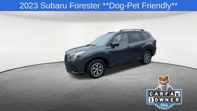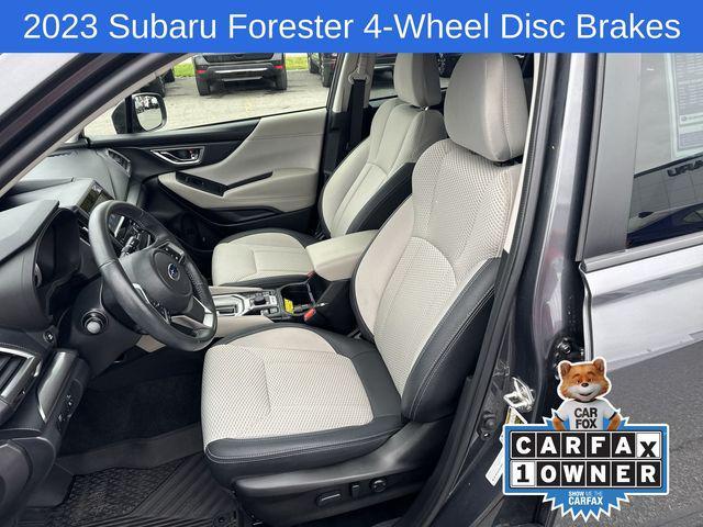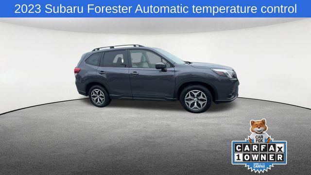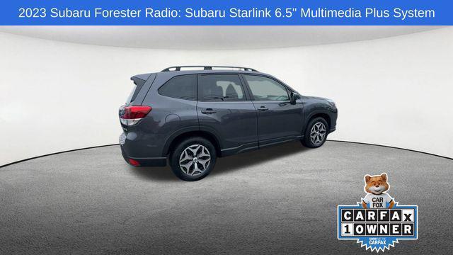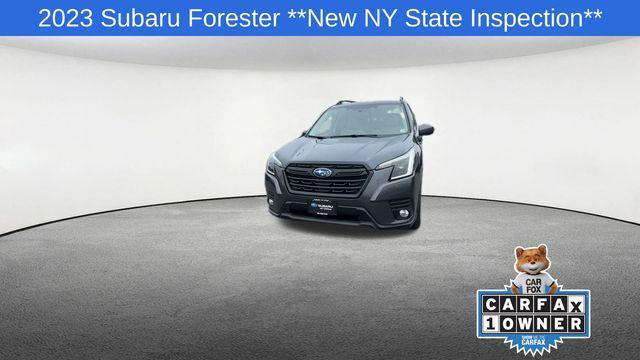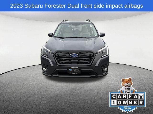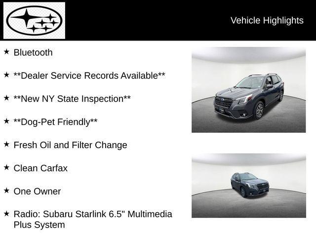 Bluetooth, **Dealer Service Records Available**, **New NY State Inspection**, **Dog-Pet Friendly**, Fresh Oil and Filter Change, Clean Carfax, One Owner, 4-Wheel Disc Brakes, ABS brakes, Anti-whiplash front head restraints, Auto High-beam Headlights, Automatic temperature control, Brake assist, Dual front impact airbags, Dual front side impact airbags, Electronic Stability Control, Emergency communication system: STARLINK Safety and Security (Subscription Required), Exterior Parking Camera Rear, Front fog lights, Fully automatic headlights, Heated Front Bucket Seats, Panic alarm, Power driver seat, Power moonroof: Panoramic, Premium Cloth Upholstery, Radio: Subaru Starlink 6.5'' Multimedia Plus System, Rear Seatback Protector, Security system, Speed-sensing steering, STARLINK/Apple CarPlay/Android Auto, Steering wheel mounted audio controls, Traction control, Trailer Hitch, Wheels: 17'' x 7.0 J Black Machine Finish Alloy.Odometer is 6891 miles below market average! CARFAX One-Owner. Clean CARFAX.Magnetite Gray Metallic 2023 Subaru Forester Premium 4D Sport Utility AWD Lineartronic CVT 2.5L 4-Cylinder DOHC 16V 26/33 City/Highway MPGDon't hesitate...call Carbone Subaru of Utica at 315-864-7909 and speak with a member of our sales team to schedule the test drive of your next NEW or PRE-OWNED vehicle!