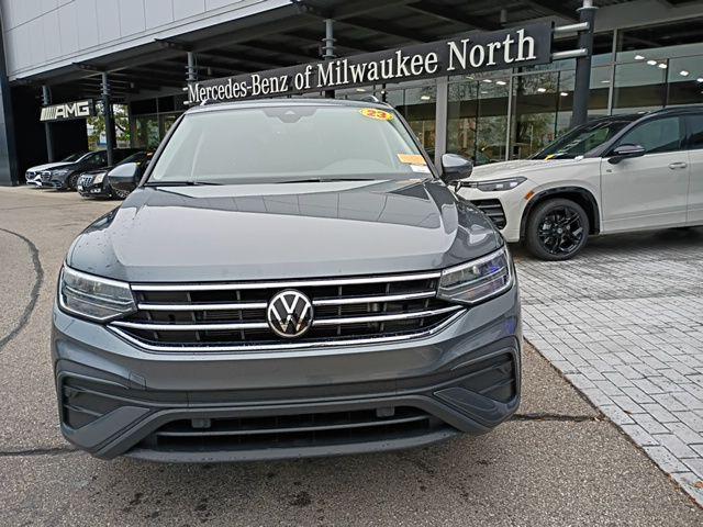 Volkswagen Certified with at least 2 years or 24,000 miles (whichever comes first) of warranty!, Dealer Maintained, Local Trade, Discover exceptional value and style with the Volkswagen Certified 2023 Volkswagen Tiguan 2.0T SE, now available at Volkswagen of Milwaukee North in Milwaukee, Wisconsin. This sleek SUV features a stunning Platinum Gray Metallic exterior paired with a sophisticated Titan Black interior, offering a refined look inside and out. Equipped with the desirable SE Package, it delivers advanced technology, comfort, and safety features, including IQ.DRIVE, a panoramic sunroof, and App-Connect with wireless capability. Backed by Volkswagens Certified Pre-Owned Warranty, this Tiguan 2.0T combines peace of mind with exceptional performance and versatilityperfect for families or city driving. Visit Volkswagen of Milwaukee North today to test drive this premium 2023 Tiguan SE and experience German engineering at its finest., AWD. Odometer is 19039 miles below market average!Certified. Platinum Gray Metallic 2023 Volkswagen Tiguan 2.0T SE 22/29 City/Highway MPGVolkswagen Certified Pre-Owned Details: * Roadside Assistance * Vehicle History * Warranty Deductible: $50 * Model Year 2020 and Newer Vehicles: 2-Year or 24,000-Mile (whichever occurs first) Comprehensive Limited Warranty. Model Year 2019 Vehicles: 1-Year or 12,000-Mile (whichever comes first) Comprehensive Limited Warranty. Electric Vehicles Model Year 2019 & Newer: 3-Year or 36,000-Mile (whichever comes first) Comprehensive Limited Warranty. 2 Years of 24-Hour Roadside Assistance, Three Months of SiriusXM Platinum Plan Trial Subscription. * 100+ Point InspectionWe have a strong and committed sales staff with many years of experience satisfying our customers' needs. The staff at Umansky Motor Cars lives up to their brands. We are the first to hear about Porsche and Volkswagen news, share performance tips, and know the cars in and out. We still get excited when a customer wants to take a car out for a test drive. Umansky Motor Cars can help you figure out loans, financing, and logistics of your purchase on site and make the entire car buying process seamless. So, feel free to browse our inventory online, request more information about vehicles, set up a test drive or inquire about financing! www.umanskymotorcars.com.Panoramic Sunroof Package, Tiguan Protection Package (2-Row) (2-Row Rubber Monster Mats w/Logo Kit (Set of 4), Heavy Duty Trunk Liner w/VW CarGo Blocks, and Luggage Net for Cargo Area), Volkswagen Certified Pre-Owned Certified, AWD, 3.33 Axle Ratio, 4-Wheel Disc Brakes, 4-Wheel Independent Suspension, 6 Speakers, ABS brakes, Air Conditioning, Alloy wheels, AM/FM radio: SiriusXM with 360L, Auto-dimming Rear-View mirror, Auto-Dimming Rearview Mirror w/HomeLink Connect, Automatic temperature control, Brake assist, Bumperdillo Rear Bumper Chrome Protection Plate, Bumpers: body-color, Compass, Credit - Power Rear Liftgate Removed, Delay-off headlights, Driver door bin, Driver vanity mirror, Dual front impact airbags, Dual front side impact airbags, Electronic Stability Control, Emergency communication system: VW Car-Net Safe & Secure 5-year, Exterior Parking Camera Rear, Four wheel independent suspension, Front anti-roll bar, Front Bucket Seats, Front Center Armrest, Front dual zone A/C, Front reading lights, Fully automatic headlights, Heated door mirrors, Heated Front Comfort Seats, Heated Front Seats, Illuminated entry, Leather Shift Knob, Low tire pressure warning, Occupant sensing airbag, Outside temperature display, Overhead airbag, Overhead console, Panic alarm, Passenger door bin, Passenger vanity mirror, Perforated V-Tex Leatherette Seating Surfaces, Power door mirrors, Power driver seat, Power Liftgate, Power steering, Power windows, Radio data system, Radio: MIB3 Composition Media AM/FM/HD, Rain sensing wipers, Rear anti-roll bar, Rear reading lights, Rear seat center armrest, Rear window defroster, Rear window wipe