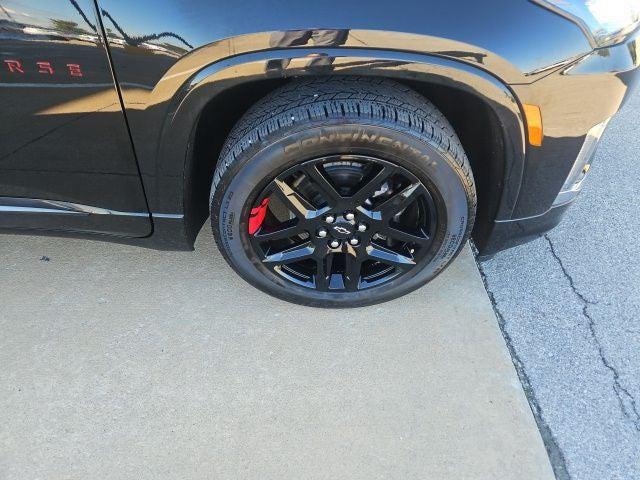 Mosaic Black Metallic 2024 Chevrolet Traverse Limited Premier AWD 9-Speed Automatic 3.6L V6 SIDI VVT REMAINDER OF FACTORY WARRANTY, CLEAN VEHICLE HISTORY...NO ACCIDENTS, RECENT TRADE IN, NAVIGATION GPS NAV, MOONROOF SUNROOF, ONE OWNER, LEATHER, ALL WHEEL DRIVE, Back-Up Camera, Dealer adjusted pricing includes $1000 Finance assistance, $1000 trade assistance, and dealer discount. To qualify for trade assistance, it must a 2016 or newer with less than 80,000 miles. Pricing does not reflect tax, title, and documentation fee. Although we make every attempt to ensure correct pricing, errors do occur. Please contact the dealership to check pricing and availability,, 10 Speakers, 3rd row seats: split-bench, 4-Wheel Disc Brakes, 6-Way Power Front Passenger Seat, 8-Way Power Driver Seat Adjuster, ABS brakes, Air Conditioning, Alloy wheels, AM/FM radio: SiriusXM with 360L, Apple CarPlay/Android Auto, Auto High-beam Headlights, Auto-dimming door mirrors, Auto-dimming Rear-View mirror, Automatic temperature control, Black Door Handles, Black Roof Rails, Bose Premium 10-Speaker Audio System Feature, Brake assist, Bumpers: body-color, Compass, Delay-off headlights, Driver door bin, Driver vanity mirror, Dual front impact airbags, Dual front side impact airbags, Dual SkyScape 2-Panel Power Sunroof, Electronic Stability Control, Emergency communication system, Exterior Parking Camera Rear, Four wheel independent suspension, Front & Rear Black Bowtie, Front anti-roll bar, Front Bucket Seats, Front Center Armrest, Front dual zone A/C, Front Passenger 2-Way Power Lumbar, Front reading lights, Fully automatic headlights, Garage door transmitter, Heated 2nd Row Outboard Position Seats, Heated door mirrors, Heated Driver & Front Passenger Seats, Heated front seats, Heated rear seats, Heated steering wheel, Illuminated entry, Leather steering wheel, Low tire pressure warning, Memory seat, Navigation System, Occupant sensing airbag, Ornamentation, Outside temperature display, Overhead airbag, Overhead console, Panic alarm, Passenger door bin, Passenger vanity mirror, Perforated Leather-Appointed Seat Trim, Power door mirrors, Power Driver Lumbar Control, Power driver seat, Power Liftgate, Power passenger seat, Power steering, Power windows, Preferred Equipment Group 1LZ, Premium audio system: Chevrolet Infotainment 3 Plus, Radio data system, Radio: Chevrolet Infotainment 3 Plus System w/Navi, Rear air conditioning, Rear anti-roll bar, Rear reading lights, Rear window defroster, Rear window wiper, Redline Accent Decals (LPO), Redline Edition, Remote keyless entry, Security system, SiriusXM w/360L, Speed control, Speed-sensing steering, Spoiler, Steering wheel memory, Steering wheel mounted audio controls, Tachometer, Telescoping steering wheel, Tilt steering wheel, Traction control, Trip computer, Turn signal indicator mirrors, Variably intermittent wipers, Ventilated Driver & Front Passenger Seats, Ventilated front seats, Voltmeter, Wheels: 20 Gloss Black Painted Alum w/Red Stripes, Wheels: 20 Metallic Machined-Face Aluminum.