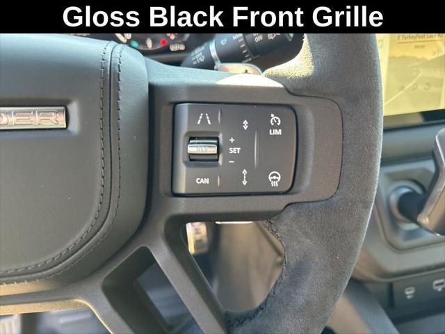 14-Way Heated & Cooled Electric Memory Front Seats, 15 Speakers, Adaptive suspension, Alloy wheels, AM/FM radio: SiriusXM, Apple CarPlay & Android Auto, Auto High-beam Headlights, Auto tilt-away steering wheel, Auto-dimming Rear-View mirror, Body Colored Spare Wheel Cover, Delay-off headlights, Extended Black Exterior Pack, Exterior Parking Camera Rear, Front Bucket Seats, Front Center Armrest, Fully automatic headlights, Garage door transmitter: HomeLink, Gloss Black Front Grille, Heads-Up Display, Heated front seats, Heated rear seats, Heated steering wheel, Illuminated entry, Memory seat, Navigation system: Connected Navigation PIVI Pro, Power moonroof, Power passenger seat, Radio data system, Radio: 700W 15 Speaker Meridian Surround Sound Sys, Split folding rear seat, Ventilated front seats, Weather band radio, Wheel Protection Pack, Wheels: 22'' Gloss Black Finish Style 5098. Carpathian Gray Premium Metallic 2024 Land Rover Defender 90 V8 4WD 8-Speed Automatic 5.0L V8