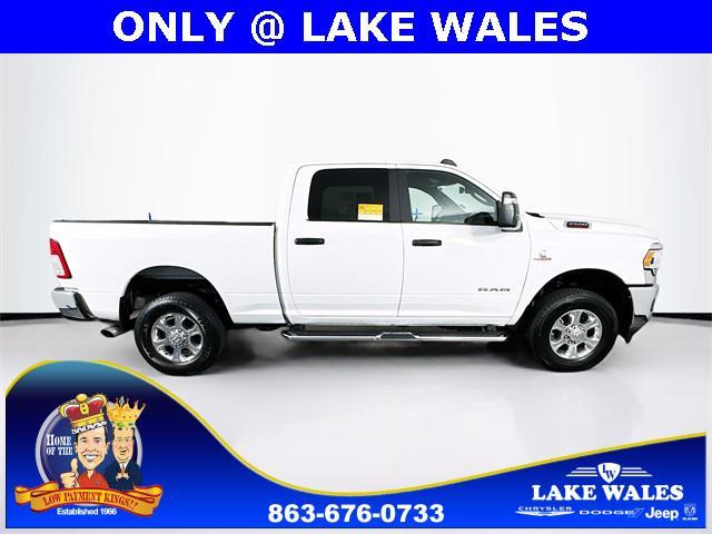 CARFAX One-Owner. Certified. Bright White Clearcoat 2024 Ram 2500 Big Horn Crew Cab 4x4 4WD 6-Speed Automatic Cummins 6.7L I6 Turbodiesel Locations is at Lake Wales Chrysler Dodge Jeep, 2 Way Rear Headrest Seat, 3.73 Axle Ratio, 4 Way Front Headrests, 4-Wheel Disc Brakes, 40/20/40 Split Bench Seat, 6 Speakers, ABS brakes, Active Noise Control System, Air Conditioning, Black Exterior Mirrors, Bluetooth Handsfree Phone & Audio, Brake assist, Bumpers: chrome, Center Hub, Center Stack Storage Drawer, Cloth 40/20/40 Bench Seat, Compass, Connectivity - US/Canada, Delay-off headlights, Driver door bin, Dual front impact airbags, Dual front side impact airbags, Electronic Stability Control, Electronically Controlled Throttle, Emergency communication system: SiriusXM Guardian, Exterior Mirrors w/Heating Element, Front Armrest w/Cupholders, Front Center Armrest w/Storage, Front reading lights, Fully automatic headlights, Global Telematics Box Module (TBM), GPS Antenna Input, Heated door mirrors, Illuminated entry, Integrated Center Stack Radio, Integrated Voice Command w/Bluetooth, Low tire pressure warning, Manual Adjust 4-Way Driver Seat, Manual Adjust 4-Way Front Passenger Seat, Occupant sensing airbag, Outside temperature display, Overhead airbag, Overhead console, Panic alarm, ParkView Rear Back-Up Camera, Passenger door bin, Passenger vanity mirror, Power Adjust Mirrors, Power door mirrors, Power steering, Power windows, Quick Order Package 2HZ Big Horn, Radio data system, Radio: Uconnect 3 w/5'' Display, Rear anti-roll bar, Rear Folding Seat, Rear seat center armrest, Rear step bumper, Remote keyless entry, Remote USB Port - Charge Only, SiriusXM Radio Service, Speed control, Storage Tray, Tachometer, Tilt steering wheel, Tip Start, Traction control, Trip computer, Turn signal indicator mirrors, Variably intermittent wipers, Voltmeter, Wheels: 18'' x 8.0'' Steel Chrome Clad.FCA US LLC Certified Pre-Owned Details: * Vehicles Up to 75,000 Miles and/or 5 Model Years. 24-Hour Towing & Roadside Assistance, Car Rental Allowance, CARFAX® Vehicle History ReportTM and an Introductory 3-month Subscription to SiriusXM® Satellite Radio & Certified Warranty Upgrades * Limited Warranty: 3 Month/3,000 Mile (whichever comes first) after new car warranty expires or from certified purchase date * Vehicle History * Roadside Assistance * Powertrain Limited Warranty: 84 Month/100,000 Mile (whichever comes first) from original in-service date * Transferable Warranty * Warranty Deductible: $100 * 125 Point Inspection