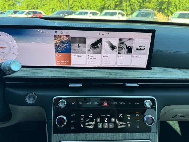 This 2025 Makalu Gray Genesis GV80 3.5T Advanced AWD is well equipped and includes these features and benefits: Option Group 01, 18 Speakers, 3rd row seats: split-bench, 4-Wheel Disc Brakes, ABS brakes, Adaptive suspension, Air Conditioning, Alloy wheels, AM/FM radio: SiriusXM, Anti-whiplash front head restraints, Auto High-beam Headlights, Auto tilt-away steering wheel, Auto-dimming door mirrors, Auto-dimming Rear-View mirror, Automatic temperature control, Brake assist, Bumpers: body-color, Cargo Blocks, Compass, Delay-off headlights, Driver door bin, Driver vanity mirror, Dual front impact airbags, Dual front side impact airbags, Electronic Stability Control, Emergency communication system: Genesis Connected Services, Exterior Parking Camera Rear, First Aid Kit, Four wheel independent suspension, Fragrance Cartridge, Front anti-roll bar, Front Bucket Seats, Front Center Armrest, Front dual zone A/C, Front reading lights, Fully automatic headlights, Garage door transmitter: HomeLink, Genuine wood console insert, Genuine wood dashboard insert, Genuine wood door panel insert, Heads-Up Display, Heated & Ventilated Front Bucket Seats, Heated door mirrors, Heated front seats, Heated rear seats, Heated steering wheel, Illuminated entry, Knee airbag, Leather Seating Surfaces, Leather steering wheel, Low tire pressure warning, Memory seat, Navigation System, NFC Key Card, Occupant sensing airbag, Outside temperature display, Overhead airbag, Overhead console, Panic alarm, Passenger door bin, Passenger vanity mirror, Power door mirrors, Power driver seat, Power Liftgate, Power moonroof, Power passenger seat, Power steering, Power windows, Radio data system, Radio: AM/FM/SiriusXM/HD Bang & Olufsen Sound Sys, Rain sensing wipers, Rear air conditioning, Rear anti-roll bar, Rear reading lights, Rear seat center armrest, Rear side impact airbag, Rear window defroster, Rear window wiper, Reclining 3rd row seat, Remote keyless entry, Security system, Speed control, Speed-sensing steering, Speed-Sensitive Wipers, Split folding rear seat, Spoiler, Steering wheel memory, Steering wheel mounted audio controls, Tachometer, Telescoping steering wheel, Tilt steering wheel, Traction control, Trip computer, Turn signal indicator mirrors, Variably intermittent wipers, Ventilated front seats, Wheel Locks, and Wheels: 20 x 8.5J Dark Gray Matte Alloy. 18 Speakers, 3rd row seats: split-bench, 4-Wheel Disc Brakes, ABS brakes, Adaptive suspension, Air Conditioning, Alloy wheels, AM/FM radio: SiriusXM, Anti-whiplash front head restraints, Auto High-beam Headlights, Auto tilt-away steering wheel, Auto-dimming door mirrors, Auto-dimming Rear-View mirror, Automatic temperature control, Brake assist, Bumpers: body-color, Cargo Blocks, Compass, Delay-off headlights, Driver door bin, Driver vanity mirror, Dual front impact airbags, Dual front side impact airbags, Electronic Stability Control, Emergency communication system: Genesis Connected Services, Exterior Parking Camera Rear, F