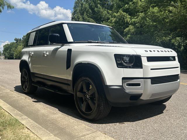 Fuji White 2025 Defender 110 S S 4WD 8-Speed Automatic 2.0L I4 DI Turbocharged 11 Speakers, 12-Way Heated Electric Memory Front Seats, 20'' Wheels, 4-Wheel Disc Brakes, ABS brakes, Adaptive Dynamics, Air Conditioning, Air Suspension Pack, Alloy wheels, AM/FM radio: SiriusXM, Apple CarPlay & Android Auto, Auto High-beam Headlights, Auto tilt-away steering wheel, Auto-dimming door mirrors, Auto-dimming Rear-View mirror, Automatic temperature control, Black Exterior Pack, Black Fixed Side Steps, Body-Colored Spare Wheel Cover, Brake assist, Bumpers: body-color, Cold Climate Package, Compass, Dark Grey Powder Coat Cross Car Beam, Delay-off headlights, Driver door bin, Driver vanity mirror, Dual front impact airbags, Dual front side impact airbags, Electronic Air Suspension, Electronic Stability Control, Emergency Pack, Exterior Parking Camera Rear, Four wheel independent suspension, Front anti-roll bar, Front Bucket Seats, Front Center Armrest, Front dual zone A/C, Front fog lights, Front reading lights, Fully automatic headlights, Garage door transmitter: HomeLink, Handover Pack, Headlight Power Wash, Heated door mirrors, Heated front seats, Heated steering wheel, Heated Washer Jets, Heated Windscreen, Illuminated entry, Low tire pressure warning, Memory seat, Navigation system: Connected Navigation PIVI Pro, Occupant sensing airbag, Outside temperature display, Overhead airbag, Overhead console, Panic alarm, Passenger door bin, Passenger vanity mirror, Power door mirrors, Power driver seat, Power moonroof, Power passenger seat, Power steering, Power windows, Radio data system, Radio: Meridian Sound System, Rain sensing wipers, Rear anti-roll bar, Rear fog lights, Rear reading lights, Rear seat center armrest, Rear Seat Convenience Pack, Rear window defroster, Rear window wiper, Remote keyless entry, Resist & Resolve Seat Trim, Security system, Speed control, Speed-sensing steering, Speed-Sensitive Wipers, Split folding rear seat, Steering wheel memory, Steering wheel mounted audio controls, Tachometer, Telescoping steering wheel, Tilt steering wheel, Tow Hitch Receiver, Traction control, Trip computer, Variably intermittent wipers, Weather band radio, Wheel Protection Pack, Wheels: 19'' Gloss Sparkle Silver Style 6010, Wheels: 20'' Satin Dark Grey Style 5098.Recent Arrival!