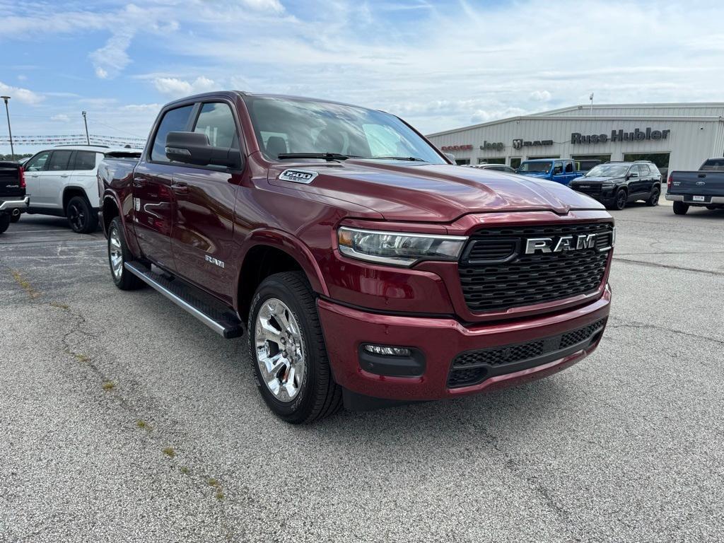 2025 Ram 1500 Big Horn/Lone Star Delmonico Red Pearlcoat 8-Speed Automatic 3.0L I6 4D Crew Cab 4WD Here at Russ Hubler CDJR - WE OFFER MANY FINANCE OPTIONS ON OUR AWARD-WINNING VEHICLES! - WE OFFER OUTSTANDING SERVICE WITH GREAT CUSTOMER SATISFACTION! - OUR FACTORY-TRAINED TECHNICIANS CAN HANDLE ANY AND ALL SERVICE YOU MAY NEED! Take advantage of our attractive low-rate financing options. Our access to various Credit Unions and National Banks can provide financing for most credit levels. We can tailor a finance package to fit your needs. To get started, complete our secure online credit application. Bed Utility Group (Exterior 115V AC Outlet, MOPAR 4 Adjustable Cargo Tie-Down Hooks, MOPAR Spray In Bedliner, and Pick-Up Box Lighting), Big Horn Level 1 Equipment Group (115V Auxiliary Power Outlet, 2nd Row In Floor Storage Bins, 400W Inverter, Auto Power-Folding Mirrors, Auto-Dimming Exterior Driver Mirror, Auto-Dimming Rear-View Mirror, Black Exterior Mirrors, Black Premium Power Mirrors, Convex Wide-Angle Exterior Mirror Insert, Exterior Mirrors Courtesy Lamps, Exterior Mirrors w/Heating Element, Exterior Mirrors w/Supplemental Signals, Glove Box Lamp, Heated Front Seats, Heated Steering Wheel, Leather Wrapped Steering Wheel, Power 2-Way Driver Lumbar Adjust, Power Adjust 8-Way Driver Seat, Power Adjustable Pedals, Rear Power Sliding Window, Rear Window Defroster, Steering Wheel Mounted Audio Controls, Sun Visors w/Illuminated Vanity Mirrors, and Universal Garage Door Opener), Quick Order Package 21Z Big Horn, Sport Appearance Package (3 Rear Seat Head Restraints, 4 Way Front Headrests, Black Interior Accents, Body Color Door Handles, Body Color Front Bumper, Body Color Rear Bumper w/Step Pads, Body Color Tailgate Handle, Bucket Seats, Deluxe Cloth Bucket Seats, Front Seat Back Map Pockets, Full Length Floor Console, Grille Surround 1 Body Color Texture 1 Black, Manual Adjust 4-Way Front Passenger Seat, RAM Grille Badge - Chrome, Rear 60/40 Folding Seat, and Rear Center Armrest), 3.21 Rear Axle Ratio, 3.55 Rear Axle Ratio, 4-Wheel Disc Brakes, 4G LTE Wi-Fi Hot Spot, 6 Speakers, 9 Amplified Speakers w/Subwoofer, ABS brakes, Air Conditioning, Alloy wheels, AM/FM radio, Apple CarPlay/Android Auto, Auto High-beam Headlights, Brake assist, Bumpers: chrome, Cloth Bench Seat, Compass, Connectivity - US/Canada, Delay-off headlights, Driver door bin, Dual front impact airbags, Dual front side impact airbags, Electronic Stability Control, Front anti-roll bar, Front Center Armrest w/Storage, Front fog lights, Front License Plate Bracket, Front reading lights, Front wheel independent suspension, Fully automatic headlights, GPS Antenna Input, Heated door mirrors, Illuminated entry, Integrated Voice Command w/Bluetooth, Low tire pressure warning, Manual Folding Exterior Mirrors, MOPAR Front & Rear Rubber Floor Mats, Occupant sensing airbag, Outside temperature display, Overhead airbag, Overhead console, Panic alarm, ParkView Rear Back-Up Camera, Passenger d