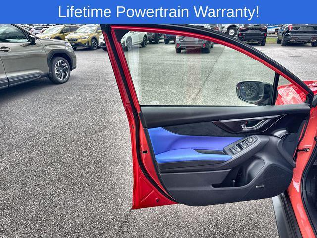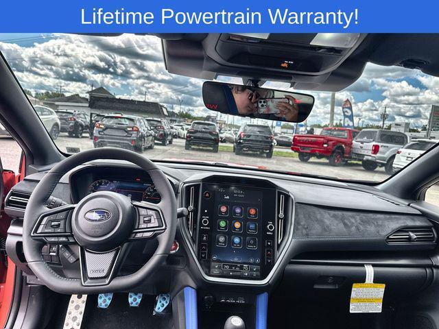 ABS brakes, Alloy wheels, Electronic Stability Control, Front dual zone A/C, Heated door mirrors, Heated front seats, Illuminated entry, Low tire pressure warning, Navigation System, Remote keyless entry, Traction control.Ignition Red 2025 Subaru WRX Sport 4D Sedan AWD 6-Speed Manual 2.4L DOHC 19/26 City/Highway MPGWRX Sport is nicely equipped with ABS brakes, Alloy wheels, Electronic Stability Control, Front dual zone A/C, Heated door mirrors, Heated front seats, Illuminated entry, Low tire pressure warning, Navigation System, Remote keyless entry, Traction control, 11 Speakers, 4-Wheel Disc Brakes, Air Conditioning, AM/FM radio: SiriusXM, Auto High-beam Headlights, Automatic temperature control, Brake assist, Bumpers: body-color, Driver door bin, Driver vanity mirror, Dual front impact airbags, Dual front side impact airbags, Exterior Parking Camera Rear, Four wheel independent suspension, Front anti-roll bar, Front Bucket Seats, Front Center Armrest, Front fog lights, Front reading lights, Fully automatic headlights, harman/kardon® Speakers, Knee airbag, Leather Shift Knob, Leather steering wheel, Occupant sensing airbag, Outside temperature display, Overhead airbag, Overhead console, Panic alarm, Passenger door bin, Passenger vanity mirror, Performance Design Recaro Heated Frt Bucket Seats, Power door mirrors, Power driver seat, Power steering, Power windows, Radio data system, Rear anti-roll bar, Rear seat center armrest, Rear window defroster, Security system, Speed control, Speed-sensing steering, Split folding rear seat, Spoiler, Sport steering wheel, Steering wheel mounted audio controls, Tachometer, Telescoping steering wheel, Tilt steering wheel, Trip computer, Turn signal indicator mirrors, Ultrasuede & Leather-Trimmed Seats w/Blue Bolsters, Variably intermittent wipers, and Wheels: 19'' x 8.5'' Satin Gray Finish Alum Alloy.