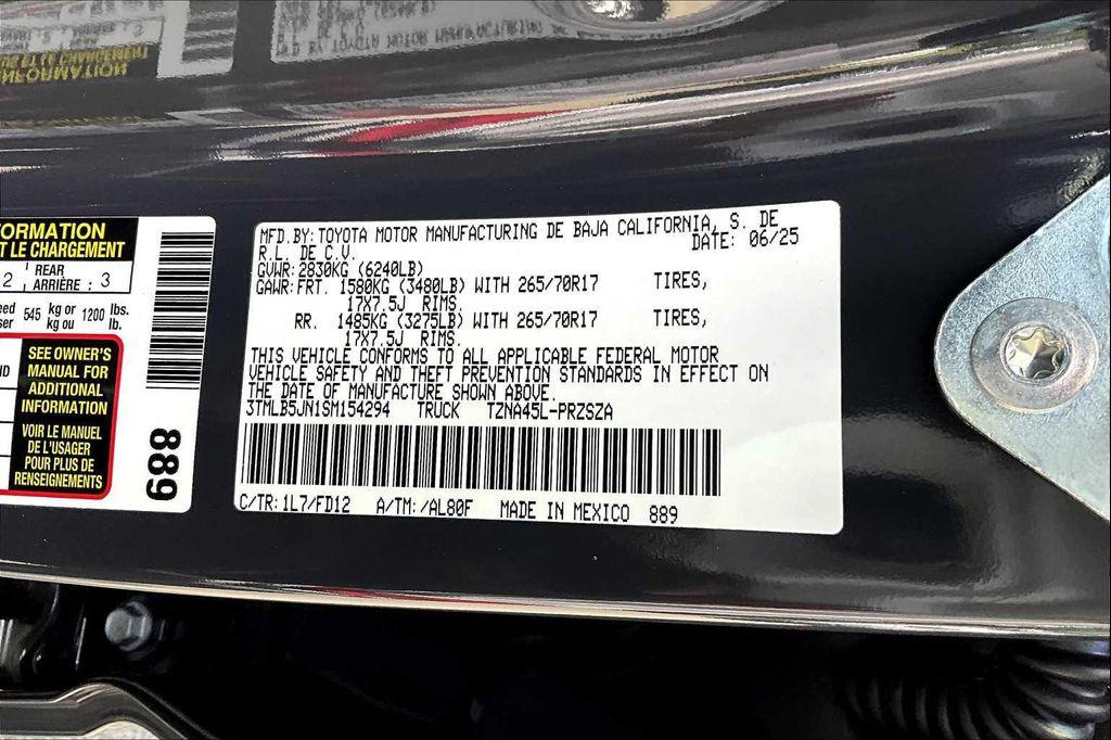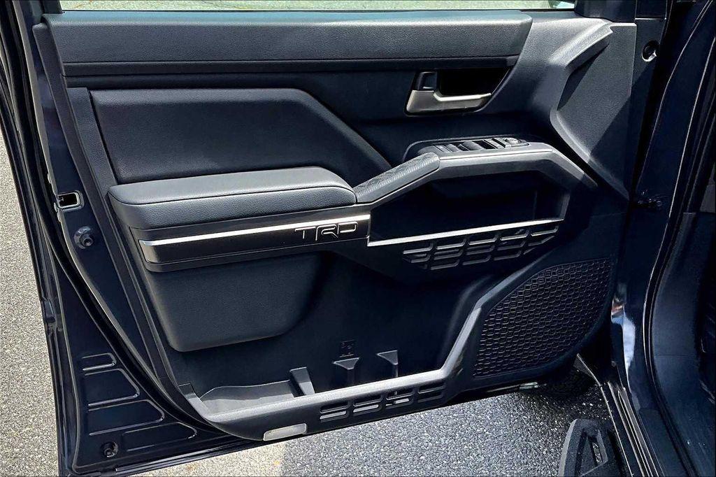 TRD OFF ROAD UPGRADE PACKAGE HomeLink Universal Transceiver, Integrated Trailer Brake Controller, multi-information display (MID) screen and trailer brake type, gain and manual trailer brake output controls, Pre-Wire Accommodation (Bed Power Port), Deck Storage Box, Heated Leather-Trimmed Steering Wheel, Power Horizontal Rear Window, 120V/400W AC Power Inverter, Heated Front Seats, Smart Key w/Digital Key Technology, Digital key enables smartphone to be used instead of a physical key (Remote Connect subscription required), JBL Premium Audio, 10 speakers w/JBL FLEX portable Bluetooth® speaker, subwoofer and amplifier, Low Auxiliary (30A) Switches, 8-Way Power Driver & Passenger Seat Adjusters, CAST ALUMINUM RUNNING BOARDS (TMS), ALL WEATHER FLOOR LINERS (TMS).
