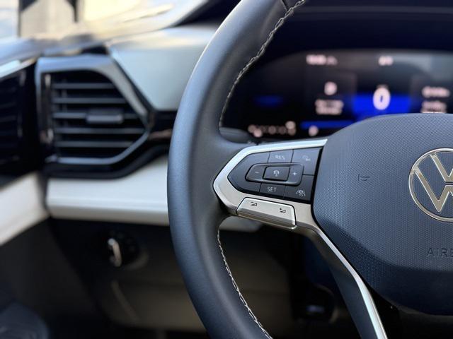 White 2025 Volkswagen Taos 1.5T S AWD 8-Speed Automatic with Tiptronic 1.5L I4 Turbocharged DOHC 16V LEV3-SULEV30 174hp 4-Wheel Disc Brakes, 6 Speakers, ABS brakes, Active Blind Spot Monitor, Air Conditioning, Alloy wheels, AM/FM radio, Auto High-beam Headlights, Brake assist, Bumpers: body-color, Cloth Seating Surfaces, Compass, Delay-off headlights, Driver door bin, Driver vanity mirror, Dual front impact airbags, Dual front side impact airbags, Electronic Stability Control, Emergency communication system: VW Car-Net Safe & Secure 5-year, Exterior Parking Camera Rear, Four wheel independent suspension, Front anti-roll bar, Front Bucket Seats, Front Center Armrest, Front reading lights, Front Strut Rear Multi-Link Suspension, Fully automatic headlights, Heated door mirrors, Heated Front Bucket Seats, Heated front seats, Heated steering wheel, Illuminated entry, Leather Shift Knob, Low tire pressure warning, Occupant sensing airbag, Outside temperature display, Overhead airbag, Overhead console, Panic alarm, Passenger door bin, Passenger vanity mirror, Power door mirrors, Power steering, Power windows, Radio data system, Radio: MIB3 Composition Color AM/FM, Rain sensing wipers, Rear anti-roll bar, Rear seat center armrest, Rear window defroster, Rear window wiper, Remote keyless entry, Speed control, Speed-sensing steering, Split folding rear seat, Spoiler, Steering wheel mounted audio controls, Tachometer, Telescoping steering wheel, Tilt steering wheel, Traction control, Trip computer, Variably intermittent wipers, Wheels: 18'' 2-Tone Machined Alloy.25/33 City/Highway MPG Price includes: $500 - Retail Customer Bonus. Exp. 01/05/2026