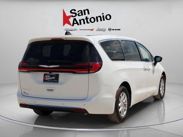 The 2026 Chrysler Pacifica Select is designed for families who want advanced safety, modern technology, and versatile comfort in a stylish minivan. With spacious three-row seating, premium convenience features, and Chryslers trusted dependability, this Pacifica is built for San Antonio commutes, school runs, and South Texas road trips.Optional Packages That Make It SpecialCustomer Preferred Package Adds family-focused features and convenience upgrades tailored to the Select trim, enhancing comfort and practicality for daily life.Standout Features3.6L Pentastar V6 engine with 9-speed automatic transmissionEPA-estimated 22 MPG combined for excellent fuel efficiencyAdaptive cruise control with stop and goBlind-spot and rear cross-path detectionFull-speed forward collision warning plus and pedestrian emergency brakingLaneSense lane departure warning with lane keep assistParkView rear backup camera with ParkSense front and rear park assist with stopUconnect 5 with 10.1-inch touchscreen, Apple CarPlay, Android Auto, and BluetoothCloth seating with power driver and passenger seats, plus driver memory settingsTri-zone automatic climate control for personalized comfortPower sliding side doors and power liftgate for easy entry and cargo accessRemote start, keyless entry, and push-button start17-inch aluminum wheelsDiamond Black Crystal Pearl-Coat exterior with Black interiorPerformance That Works for FamiliesThe 3.6L Pentastar V6 provides smooth and efficient power whether youre navigating I-35 traffic or heading out on a family trip to the Hill Country. With advanced safety features and a quiet ride, the Pacifica Select delivers confidence and comfort in every mile.Peace of Mind, Factory FreshEvery new Pacifica includes a 5-year/60,000-mile powertrain warranty and 3-year/36,000-mile bumper-to-bumper coverage. It also comes with roadside assistance and eligibility for Mopar Vehicle Protection Plans. This is a showroom-fresh, never-titled minivan with zero previous owners.Built for San Antonio FamiliesWith seating for seven, versatile cargo space, and family-friendly features, the 2026 Chrysler Pacifica Select is perfect for school drop-offs, weekend road trips, and everything in between. From San Antonio to the South Texas coast, its built to make life easier and more enjoyable.This new 2026 Chrysler Pacifica Select is available now at San Antonio Dodge Chrysler Jeep RAM Home of the Easy Price. Stop by today or schedule your test drive online were here to make it easy.