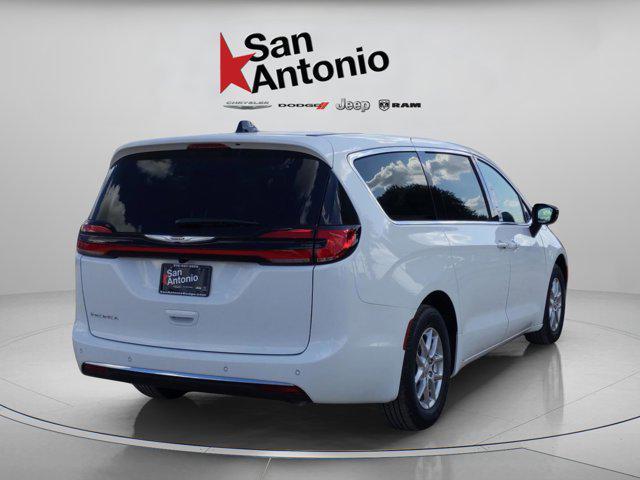 The 2026 Chrysler Pacifica Select brings smart technology, advanced safety, and versatile comfort to every drive. With three rows of seating, family-friendly features, and Chryslers proven dependability, this Pacifica is designed for San Antonio families balancing school runs, weekend getaways, and South Texas road trips.Optional Packages That Make It SpecialCustomer Preferred Package Enhances the Select trim with extra convenience upgrades, giving families more everyday usability and comfort for passengers in every row.Standout Features3.6L Pentastar V6 with stop/start and 9-speed automatic transmissionEPA-estimated 22 MPG combined for strong fuel efficiencyAdaptive cruise control with stop and goBlind-spot and cross-path detectionFull-speed forward collision warning plus and pedestrian emergency brakingLaneSense lane departure warning with lane keep assistParkView rear backup camera with ParkSense front and rear park assist with stopRain-sensitive windshield wipers and auto high-beam headlampsUconnect 5 with 10.1-inch touchscreen, Apple CarPlay, Android Auto, SiriusXM, and BluetoothCloth seating with 8-way power driver seat, power passenger seat, and driver memory settingsTri-zone automatic climate control for comfort in every rowPower sliding side doors and power liftgate for easy accessRemote start, keyless entry, and push-button ignition17-inch aluminum wheelsDiamond Black Crystal Pearl-Coat exterior with Black interiorPerformance That Works for FamiliesThe 3.6L Pentastar V6 is smooth, efficient, and provenperfect for daily commuting and family travel. Combined with advanced driver safety systems, the Pacifica Select delivers confidence whether youre navigating San Antonio traffic or heading out for a weekend trip to the Hill Country.Peace of Mind, Factory FreshEvery Pacifica comes with a 5-year/60,000-mile powertrain warranty and 3-year/36,000-mile bumper-to-bumper coverage, plus roadside assistance and Mopar Vehicle Protection Plan eligibility. This is a showroom-fresh, never-titled minivan with zero previous owners.Built for San Antonio FamiliesFrom school drop-offs to road trips across South Texas, the 2026 Chrysler Pacifica Select is built to make life easier. With the right balance of safety, technology, and comfort, it gives families peace of mind and everyday convenience.This new 2026 Chrysler Pacifica Select is available now at San Antonio Dodge Chrysler Jeep RAM Home of the Easy Price. Stop by today or schedule your test drive online were here to make it easy.