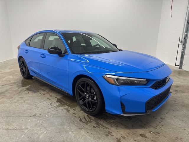 Boost Blue Pearl 2026 Honda Civic Hybrid Sport eCVT 2.0L I4 DOHC 16V Adaptive Cruise Control: Adaptive Cruise Control (ACC) with Low-Speed Follow, AM/FM radio, Apple CarPlay/Android Auto, Blind Spot Information (BSI) System warning, Front Bucket Seats, Front Center Armrest, Heated Front Bucket Seats, Heated front seats, Illuminated entry, Lane departure: Lane Keeping Assist System (LKAS) active, Leather Shift Knob, Power moonroof, Power steering, Power windows, Radio data system, Radio: 180-Watt Audio System, Remote keyless entry, Steering wheel mounted audio controls.Recent Arrival! 50/45 City/Highway MPG