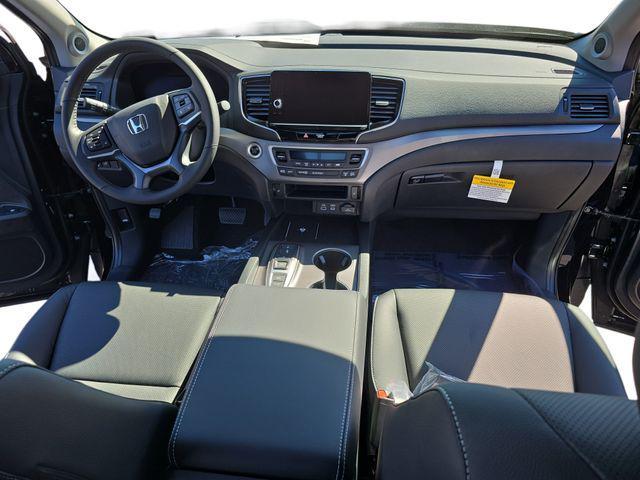 Crystal Black Pearl 2026 Honda Ridgeline RTL AWD 9-Speed Automatic 3.5L V6 SOHC i-VTEC 24Vblack Leather, 4-Wheel Disc Brakes, 4.33 Axle Ratio, 7 Speakers, ABS brakes, Air Conditioning, Alloy wheels, AM/FM radio: SiriusXM, Auto-dimming Rear-View mirror, Automatic temperature control, Blind Spot Information (BSI) System warning, Bluetooth® Hands-Free Link, Brake assist, Bumpers: body-color, Compass, Delay-off headlights, Driver door bin, Driver vanity mirror, Driver's Seat Mounted Armrest, Dual front impact airbags, Dual front side impact airbags, Electronic Stability Control, Emergency communication system: HondaLink Assist, Exterior Parking Camera Rear, Four wheel independent suspension, Front anti-roll bar, Front Bucket Seats, Front dual zone A/C, Front fog lights, Front reading lights, Fully automatic headlights, Garage door transmitter: HomeLink, Heated door mirrors, Heated Front Bucket Seats, Heated front seats, Illuminated entry, Leather Seat Trim, Leather steering wheel, Low tire pressure warning, Memory seat, Occupant sensing airbag, Outside temperature display, Overhead airbag, Overhead console, Panic alarm, Passenger door bin, Passenger seat mounted armrest, Passenger vanity mirror, Power door mirrors, Power driver seat, Power moonroof, Power passenger seat, Power steering, Power windows, Radio data system, Radio: 215-Watt Audio System w/7 Speakers, Rear air conditioning, Rear anti-roll bar, Rear reading lights, Rear seat center armrest, Rear step bumper, Rear window defroster, Remote keyless entry, Security system, SiriusXM, Speed control, Speed-sensing steering, Split folding rear seat, Steering wheel mounted audio controls, Tachometer, Telescoping steering wheel, Tilt steering wheel, Traction control, Trip computer, Turn signal indicator mirrors, Variably intermittent wipers, Wheels: 18'' Pewter Gray Machine-Finished Alloy, black Leather.