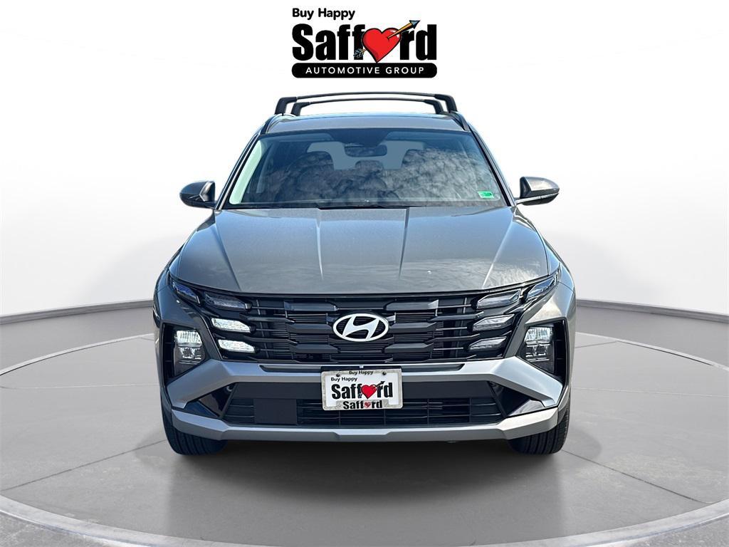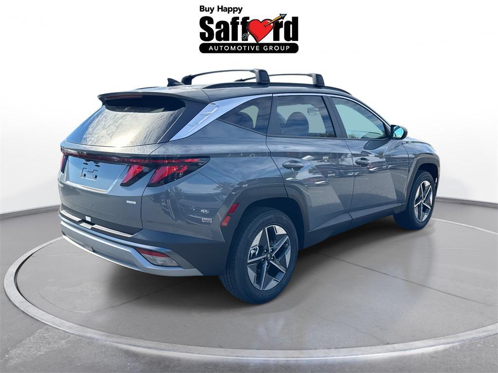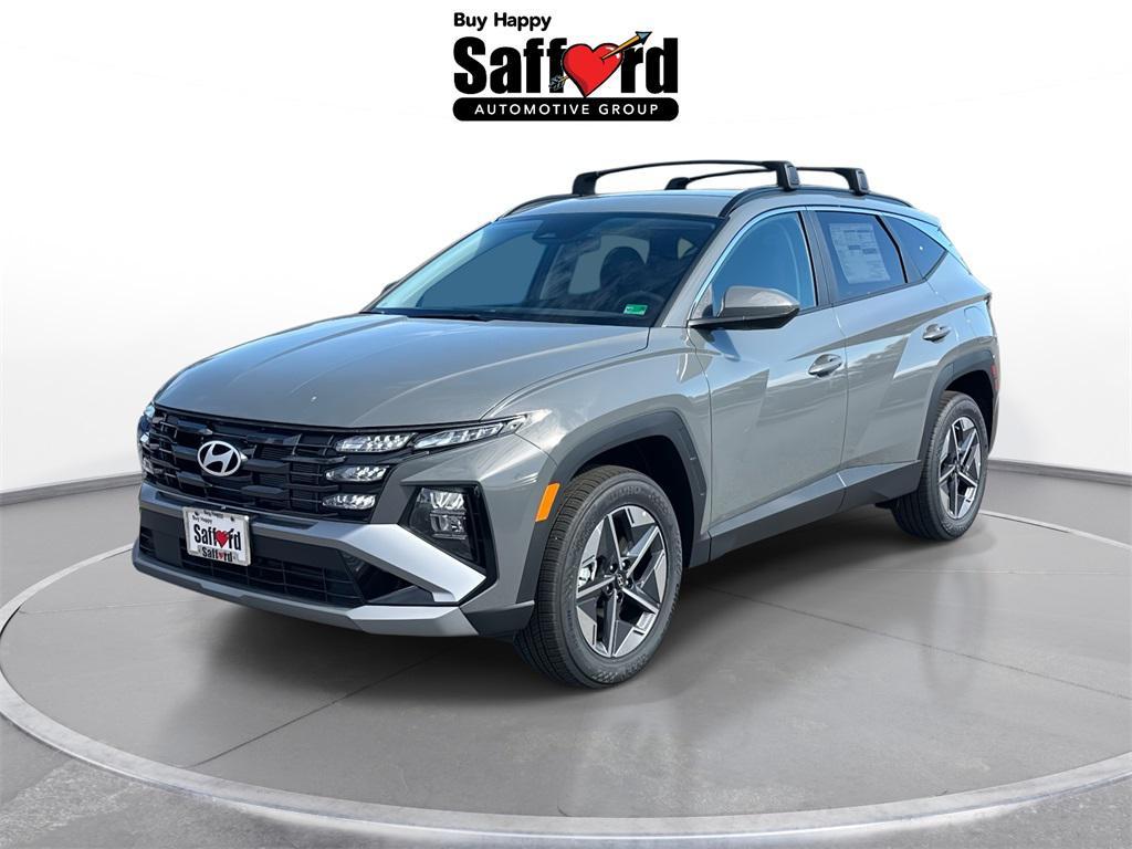 Gray 2026 Hyundai Tucson SEL AWD, 18'' x 7.5J Alloy Wheels, 4-Wheel Disc Brakes, 6 Speakers, ABS brakes, Air Conditioning, Alloy wheels, AM/FM radio: SiriusXM, Apple CarPlay & Android Auto, Auto High-beam Headlights, Automatic temperature control, Brake assist, Bumpers: body-color, Cargo Net, Cargo Tray, Carpeted Floor Mats, Delay-off headlights, Driver door bin, Driver vanity mirror, Dual front impact airbags, Dual front side impact airbags, Electronic Stability Control, Emergency communication system: Bluelink+, First Aid Kit, Four wheel independent suspension, Front anti-roll bar, Front Bucket Seats, Front Center Armrest, Front dual zone A/C, Front reading lights, Fully automatic headlights, H-Tex Leatherette Seat Trim, Heated door mirrors, Heated Front Bucket Seats, Heated front seats, Illuminated entry, Low tire pressure warning, Occupant sensing airbag, Option Group 01, Outside temperature display, Overhead airbag, Overhead console, Panic alarm, Passenger door bin, Passenger vanity mirror, Power door mirrors, Power driver seat, Power Liftgate, Power steering, Power windows, Radio data system, Radio: AM/FM/HD Audio System, Rear anti-roll bar, Rear reading lights, Rear seat center armrest, Rear side impact airbag, Rear window defroster, Rear window wiper, Remote keyless entry, Roadside Assistance Kit, Roof Rack Cross Rails, Security system, Speed control, Split folding rear seat, Spoiler, Steering wheel mounted audio controls, Tachometer, Telescoping steering wheel, Tilt steering wheel, Traction control, Trip computer, Variably intermittent wipers, AWD. AWD 8-Speed Automatic with SHIFTRONIC 2.5L I4 DGI DOHC 16V LEV3-SULEV30 187hp24/30 City/Highway MPG