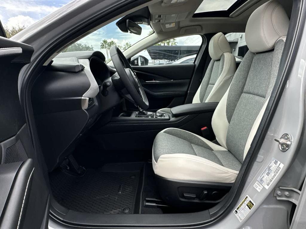 4-Wheel Disc Brakes, ABS brakes, Air Conditioning, Alloy wheels, AM/FM radio, AppLink/Apple CarPlay and Android Auto, Auto High-beam Headlights, Automatic temperature control, Black Lug Nuts & Black Wheel Locks, Brake assist, Bumpers: body-color, Cargo Tray, Compass, Delay-off headlights, Driver door bin, Driver vanity mirror, Dual front impact airbags, Dual front side impact airbags, Electronic Stability Control, Emergency communication system: MAZDA CONNECT, Exterior Parking Camera Rear, Front anti-roll bar, Front Bucket Seats, Front Center Armrest, Front dual zone A/C, Front reading lights, Front wheel independent suspension, Fully automatic headlights, Heated door mirrors, Heated Front Bucket Seats, Heated front seats, High Wall All-Weather Floor Mats, Illuminated entry, Knee airbag, Leather Shift Knob, Leather steering wheel, Low tire pressure warning, MAZDA CONNECT Infotainment System, Memory seat, Occupant sensing airbag, Outside temperature display, Overhead airbag, Overhead console, Panic alarm, Passenger door bin, Passenger vanity mirror, Power door mirrors, Power driver seat, Power moonroof, Power steering, Power windows, Radio data system, Rain sensing wipers, Rear seat center armrest, Rear side impact airbag, Rear window defroster, Rear window wiper, Remote keyless entry, Speed control, Speed-sensing steering, Split folding rear seat, Spoiler, Steering wheel mounted audio controls, Tachometer, Telescoping steering wheel, Tilt steering wheel, Traction control, Trip computer, Turn signal indicator mirrors, Variably intermittent wipers, and Wheels: 18 x 7J Aluminum Alloy. 24/31 City/Highway MPG