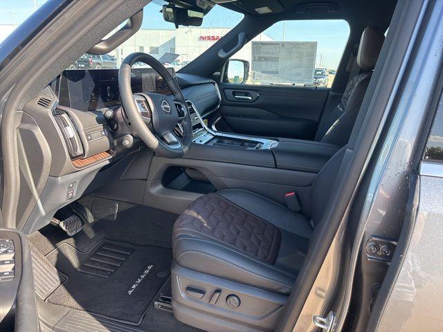 Thank you for taking the time to browse our inventory online, we truly appreciate it. The opportunity to serve you is why we do this everyday. Here at Orr Nissan of Wichita you get the buying experience you deserve. Our straight forward pricing, exceptional reconditioning and great customer service set the standard for the Wichita area. Give us a chance to show you what it would mean to us to welcome you to the Orr Family. If you like what you see and would like to get prequalified please call us at 316-681-6900. Our sales department can save you time by conducting your entire purchase online. You can even get custom lease or finance payments on every car in our inventory right on our website. Allow us to help with travel arrangements when you are shopping from out of town or we can deliver your new vehicle straight to your door. Personalized service conducted the way you like; in person, over the phone or online. 2026 Nissan Armada Platinum 4WD 9-Speed Automatic 3.5L DOHC Gun Metallic 4WD, 12 Speakers, 3rd row seats: split-bench, 4-Wheel Disc Brakes, ABS brakes, Air Conditioning, Alloy wheels, AM/FM radio: SiriusXM w/360L, Anti-whiplash front head restraints, Apple CarPlay/Android Auto, Auto High-beam Headlights, Auto tilt-away steering wheel, Auto-dimming door mirrors, Auto-dimming Rear-View mirror, Auto-leveling suspension, Automatic temperature control, Brake assist, Bumpers: body-color, Carpeted Floor Mats w/Captain Chairs, Center Front Spoiler, Climate Controlled Heated & Ventilated Front Seats, Compass, Cross Bars, Delay-off headlights, Driver door bin, Driver vanity mirror, Dual front impact airbags, Dual front side impact airbags, Electronic Stability Control, Emergency communication system: NissanConnect Services, External Ground Lighting, Four wheel independent suspension, Front anti-roll bar, Front Bucket Seats, Front Center Armrest, Front dual zone A/C, Front fog lights, Front reading lights, Fully automatic headlights, Garage door transmitter: HomeLink, Genuine wood dashboard insert, Heated door mirrors, Heated front seats, Heated rear seats, Heated steering wheel, HVAC memory, Illuminated entry, Illuminated Kick Plates, Knee airbag, Leather steering wheel, Low tire pressure warning, Memory seat, Navigation system: Google Maps, Occupant sensing airbag, Outside temperature display, Overhead airbag, Overhead console, Panic alarm, Passenger door bin, Passenger vanity mirror, Power door mirrors, Power driver seat, Power Liftgate, Power moonroof, Power passenger seat, Power steering, Power windows, Quilted Leather Seat Trim, Radio: NissanConnect w/SiriusXM 360L, Rain sensing wipers, Rear air conditioning, Rear anti-roll bar, Rear Bumper Protector, Rear reading lights, Rear window defroster, Rear window wiper, Reclining 3rd row seat, Remote keyless entry, Security system, Speed control, Speed-sensing steering, Speed-Sensitive Wipers, Splash Guards, Split folding rear seat, Spoiler, Steering wheel memory, Steering wheel mounted audio co