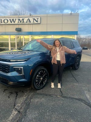 The entire process was seamless and easy from start to finish. I absolutely LOVE my new traverse! I am especially grateful for the time Lance Underwood spent with us, thoroughly explaining all of the bell finish. I absolutely LOVE my new traverse! I am especially grateful for the time Lance Underwood spent with us, thoroughly explaining all of the bells and whistles, and making sure we felt confident before leaving. This is our second vehicle from Lance & we HIGHLY recommend the Bowman Chevrolet dealership and team! More