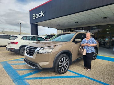 We are an elderly couple and just recently purchased a new Rogue from Beck Nissan. It was a great experience.They treated us like family. Everything was calm and relaxed. No pressure. Anita and Chris More