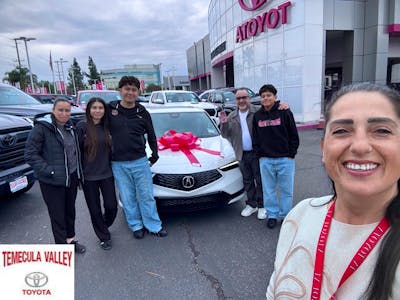 Our experience at Toyota Temecula was all around great, Entela was very positive and easy to work with, she provided good info on everything we looked at while giving us space to make our decision. The man Entela was very positive and easy to work with, she provided good info on everything we looked at while giving us space to make our decision. The manager Ryan was also a good experience to negotiate with, and Sal in finance was clear and quick to close out the deal. Everyone was very professional and we would buy from them again in the future. More