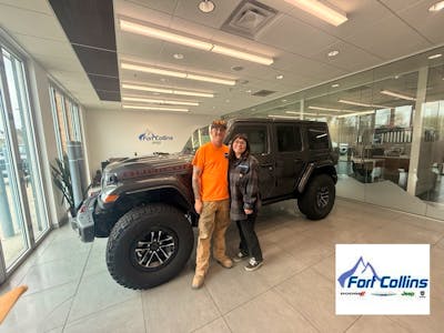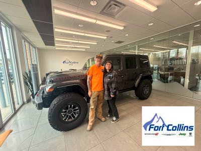 Our experience with purchasing our vehicle was amazing. Andrew was very knowledgeable and made our experience enjoyable. Financing gave us a good offer for our trade- in and worked with the monthly paymen Andrew was very knowledgeable and made our experience enjoyable. Financing gave us a good offer for our trade- in and worked with the monthly payment process to make the vehicle in our payment range. The paper work process was quick and stress free. I would recommend Fort Collins Jeep, and would purchase from them again in the future. More