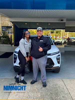 I personally had a great experience finding a car at nimnicht Chevrolet! Christina was very attentive and informative answering all my questions and addressing my concerns. Even when I made the wrong tu nimnicht Chevrolet! Christina was very attentive and informative answering all my questions and addressing my concerns. Even when I made the wrong turn on our test she was cool, calm and collective. The car was exactly what I was exactly what I was looking for and the bose sound system is amazing. "Ice ice baby" by vanilla ice never sounded so amazing! Thanks to a great saleswoman!!!! More