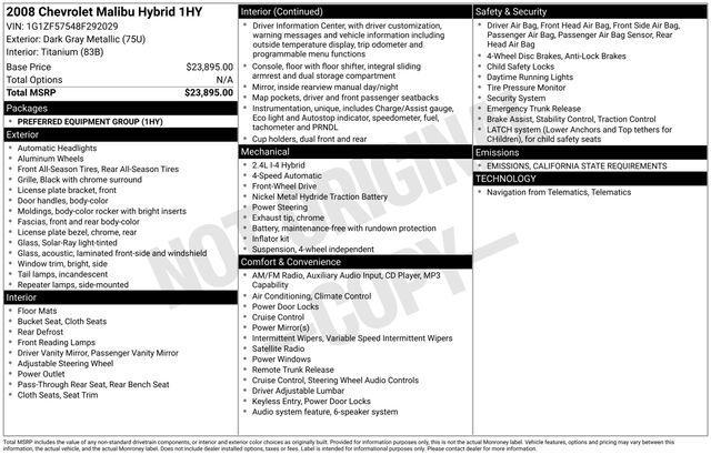 Hybrid Efficiency Low Miles Comfortable InteriorThis vehicle pairs hybrid technology with the ECOTEC 2.4L I4 engine, delivering an excellent 24/32 City/Highway MPG for both performance and efficiency.Inside, the cabin features automatic temperature control, Titanium cloth seating, and a power-adjustable driver seat for comfort on every drive. The AM/FM stereo with CD/MP3 and XM Satellite Radio, along with 6 speakers, keeps you connected and entertained, while steering wheel-mounted audio controls add convenience.Additional highlights include fully automatic headlights, remote keyless entry, alloy wheels, and a comprehensive Preferred Equipment Group 1HY package for a well-rounded experience.Odometer: Low mileage for its age!Price does not include Tax, Title, and $237 Dealer Document Preparation Fee.