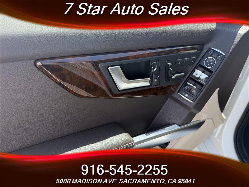 Introducing the 2013 Mercedes-Benz GLK 350, a beast on wheels with a 3.5L V6 engine that's ready to roar with 302hp and 273ft. lbs. of torque. This beauty is dressed to impress in a sleek Polar White exterior, while the Almond/Mocha leather interior screams luxury and comfort. Now, let's talk factory default features - this ride is packed with goodies! Picture this: a panoramic sunroof to let the sunshine in, power liftgate for those days when your hands are full (or you just want to feel fancy), and dual-zone automatic climate control to keep everyone happy. But wait, there's more! You'll also enjoy the convenience of Bluetooth connectivity for hands-free calls, a premium sound system to rock out to your favorite tunes, and heated front seats for those chilly mornings when you just can't deal with the cold leather. With less than 120,000 miles on the clock and averaging less than 10,000 miles per year, this GLK 350 is just hitting its stride. And with a fuel efficiency of 19 MPG in the city and 25 MPG on the highway, you can cruise around town without breaking the bank. Oh, and did we mention it has a clean CARFAX report? Yep, this baby has been well taken care of and is in excellent overall condition. So what are you waiting for? Come take this Mercedes-Benz GLK 350 for a spin and experience luxury and performance like never before! 7 Star Auto Sales 5000 Madison Ave SACRAMENTO, CA 95841 (916) 545-2255 7 Star Auto Sales is a used car dealership located in Sacramento, CA, known for offering a wide selection of quality pre-owned vehicles. The dealership is focused on providing a transparent, fair, and hassle-free car-buying experience for its customers. In addition to sales, the dealership offers financing options and consignment services. -- INSTALLED FEATURES: Air filtration: active charcoal, Front air conditioning: automatic climate control, Front air conditioning zones: dual, Rear vents: second row, Airbag deactivation: occupant sensing passenger, Front airbags: dual, Knee airbags: driver, Side airbags: front, Side curtain airbags: front / rear, Antenna type: diversity / mast, Auxiliary audio input: Bluetooth / iPod/iPhone / jack / USB, In-Dash CD: 6 disc / DVD audio, Radio: AM/FM / HD radio, Radio data system, Rear audio: separate, Speed sensitive volume control, Subwoofer: 1, Total speakers: 6, ABS: 4-wheel, Brake drying, Braking assist, Electronic brakeforce distribution, Emergency braking preparation, Front brake type: disc, Power brakes, Rear brake type: disc, Armrests: front center, Dash trim: wood, Door trim: wood, Floor mat material: carpet, Floor material: carpet, Floor mats: front / rear, Shift knob trim: leather, Steering wheel trim: leather, Ambient lighting, Cargo area light, Cargo cover: hard / retractable, Center console: front console with armrest, Cruise control, Cupholders: front / rear, Multi-function remote: keyless entry / panic alarm / trunk release, One-touch windows: 4, Power outlet(s): 12V cargo area / 12V front, Power steering: variable/speed-proportional, Power windows: lockout button, Reading lights: front / rear, Steering wheel: tilt and telescopic, Steering wheel mounted controls: audio / cruise control / paddle shifter, Storage: cargo tie-down anchors and hooks / door pockets / front seatback, Vanity mirrors: dual illuminating, Door handle color: body-color, Exhaust: dual tip, Exhaust tip color: chrome, Front bumper color: body-color, Grille color: chrome, Mirror color: body-color, Rear bumper color: body-color, Rear spoiler: lip, Rear spoiler color: body-color, Rear trunk/liftgate: liftgate, Infotainment screen size: 5.8 in., Clock, Compass, Digital odometer, External temperature display, Fuel economy display: MPG, Gauge: tachometer, Multi-function display, Trip odometer, Warnings and reminders: coolant temperature warning / lamp failure / low fuel level / low oil pressure / maintenance due, Daytime running lights: LED, Exterior entry lights: puddle lamps, Front fog lights, Headlights: