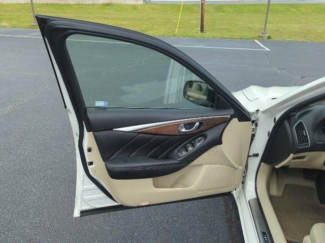 Infinit Q50 Premium. Deluxe Touring Package. Navigation, Sunroof Bluetooth. Rain Sensing Wipers. Spare tire package. Sirius XM Satellite Radio. Carfax Certified No accidents![U01] NAVIGATION PACKAGEtouch-screenINFINITI InTouch Navigation Systemsecurity and convenience featuresincluding one year subscription of safetySiriusXM Traffic w/real-time traffic informationincluding one-shot voice destination entry and mirror compass replaced by navigation compassvoice recognition for navigation functionsINFINITI Connectionlane guidance and 3-D building graphics$1,400.00[W01] SPARE TIRE PACKAGETemporary Spare TireJack KitTemporary Spare Wheel$200.00[C03] 50 STATE EMISSIONS[L94] CARGO PACKAGE W/SPARE TIRE PACKAGETrunk MatFirst Aid KitCargo Net$200.00[L92] ALL WEATHER PACKAGE W/SPARE TIRE PACKAGETrunk ProtectorAll-Season Mats[Z66] ACTIVATION DISCLAIMER$230.00[B92] SPLASH GUARDS$205.00[L11] FLOOR MATS[K01] DELUXE TOURING PACKAGE60/40 Split-Folding Rear SeatsMaple Wood Trimcenter armrest pass-thruPower Tilt & Telescopic Steering ColumnAround View Monitor w/Moving Object Detectionlinked to individual intelligent keysmirrors and steering wheel settingsRain-Sensing Front Windshield Wipersfront and rear park sensorsAuto-Dimming Outside Mirrors w/Reverse Tilt-DownDual Occupant Memory System For Driver's SeatDirect Adaptive Steering$3,100.00[N92] ILLUMINATED KICK PLATES$440.00[S55] LITERATURE KITMOONLIGHT WHITEWHEAT,[X01] LEATHER SEATING PACKAGE$1,000.00Driver Seat 2-Way Power Lumbarprice detailstotal added features$6,775.00