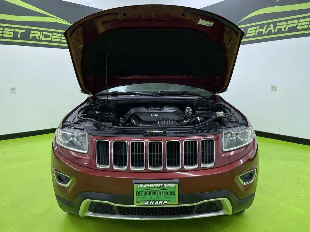Experience the perfect blend of style, comfort, and performance with this 2014 Jeep Grand Cherokee Limited. Dressed in a striking Deep Cherry Red Crystal Pearl Coat exterior complemented by a sleek black leather interior, this SUV is sure to turn heads wherever you go. Powered by a robust 3.6L V6 engine delivering 290 horsepower and paired with an automatic transmission, it offers both power and efficiency for your everyday adventures. With its clean CARFAX report showing no accidents and well-maintained mileage at just over 128k miles, this vehicle promises reliability.