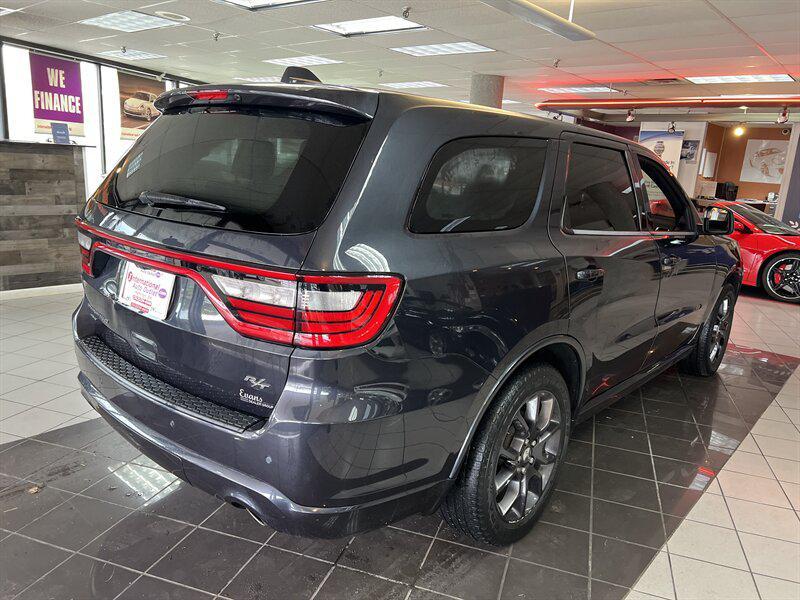 2015 DODGE DURANGO R/T -- 4 DOOR SUV AWD -- HEMI 5.7L V8 -- 3RD ROW SEATS --NAVIGATION SYSTEM -- BACK UP CAMERA -- LEATHER HEATED SEATS -- POWER MOONROOF -- -- HANDS FREE CALLING -- STEERING WHEEL AUDIO CONTROL -- POWER WINDOWS AND MEMORY SEAT -- KEYLESS ENTRY --- POWER LOCKS -- DUAL AC -- DUAL POWER STEERING -- CLIMATE CONTROL -- CRUISE CONTROL --BLUETOOTH -- AUX -- INPUT -- CD PLAYER ----ROOF RACK -- RUNS AND DRIVES GREAT --WE FINANCE --MOST OF OUR VEHICLES ARE HIGH QUALITY, HAND PICKED, ONE OWNER IN A LIKE NEW CONDITION WITH A CLEAN CAR FAX. MOST OF OUR VEHICLES ARE COVERED WITH THE MANUFACTURER WARRANTY OR A 3 MONTHS/4500 MILE WARRANTY. FINANCING IS AVAILABLE AND TRADES ARE ALWAYS WELCOMED. FOR SIMILAR GREAT DEALS PLEASE CONTACT US. -- INSTALLED FEATURES: Air filtration, Front air conditioning: automatic climate control, Front air conditioning zones: dual, Rear air conditioning: automatic climate control, Rear air conditioning zones: single, Airbag deactivation: occupant sensing passenger, Front airbags: dual, Knee airbags: driver, Side airbags: front, Side curtain airbags: front / rear / third row, Antenna type: diversity / mast, Auxiliary audio input: Bluetooth / iPod/iPhone / jack / USB, Premium brand: Beats, Radio: AM/FM / touch screen display / voice operated, Radio data system, Satellite radio: SiriusXM, Subwoofer: 1, Total speakers: 9, Watts: 506, ABS: 4-wheel, Brake drying, Braking assist, Electronic brakeforce distribution, Emergency braking preparation, Front brake type: ventilated disc, Power brakes, Rear brake type: disc, Armrests: rear folding, Door sill trim: scuff plate, Floor mat material: carpet, Floor material: cargo area carpet / carpet, Floor mats: front / rear, Heated steering wheel, Steering wheel trim: leather, Ambient lighting, Assist handle: front / rear, Capless fuel filler system, Cargo area light, Cargo cover, Center console: front console with armrest and storage, Cruise control, Cupholders: front / illuminated / rear / third row, Flashlight: rechargeable, Memorized settings: 2 driver / audio system / driver seat / side mirrors, Multi-function remote: panic alarm / proximity entry system / trunk release, One-touch windows: 2, Overhead console: front, Power outlet(s): 115V rear / 12V front / 12V rear, Power steering, Power windows: lockout button, Push-button start, Reading lights: front / rear, Rearview mirror: auto-dimming, Remote engine start, Steering wheel: tilt and telescopic, Steering wheel mounted controls: audio / cruise control / paddle shifter / phone / voice control, Storage: cargo net / cargo tie-down anchors and hooks / door pockets / front seatback, Universal remote transmitter: garage door opener, Vanity mirrors: dual illuminating, Door handle color: body-color, Exhaust: dual tip, Exhaust tip color: chrome, Fender lip moldings: body-color, Front bumper color: body-color, Grille color: black / body-color surround, Headlight bezel color: black, Mirror color: body-color, Rear bumper color: body-color, Rear spoiler: roofline, Rear spoiler color: body-color, Rear trunk/liftgate: liftgate / power operated, Window trim: black, Infotainment: Uconnect, Infotainment screen size: 8.4 in., Clock, Compass, Customizable instrument cluster, Digital odometer, External temperature display, Gauge: tachometer, Instrument cluster screen size: 7 in., Multi-function display, Trip odometer, Warnings and reminders: low fuel level / low washer fluid, Daytime running lights: LED, Front fog lights, Headlights: auto delay off / auto on/off / HID/Xenon / self-leveling / wiper activated, Taillights: LED, Side mirror adjustments: power / power folding, Side mirrors: driver side auto-dimming / heated / integrated turn signals, 4WD selector: electronic hi-lo, 4WD type: on demand, Alternator: 180 amps, Battery: maintenance-free, Battery rating: 700 CCA, Emissions: 50 state, Active head restraints: dual front, Automatic hazard warning lights, Camera system: rearview, Child safety door locks, Child seat a