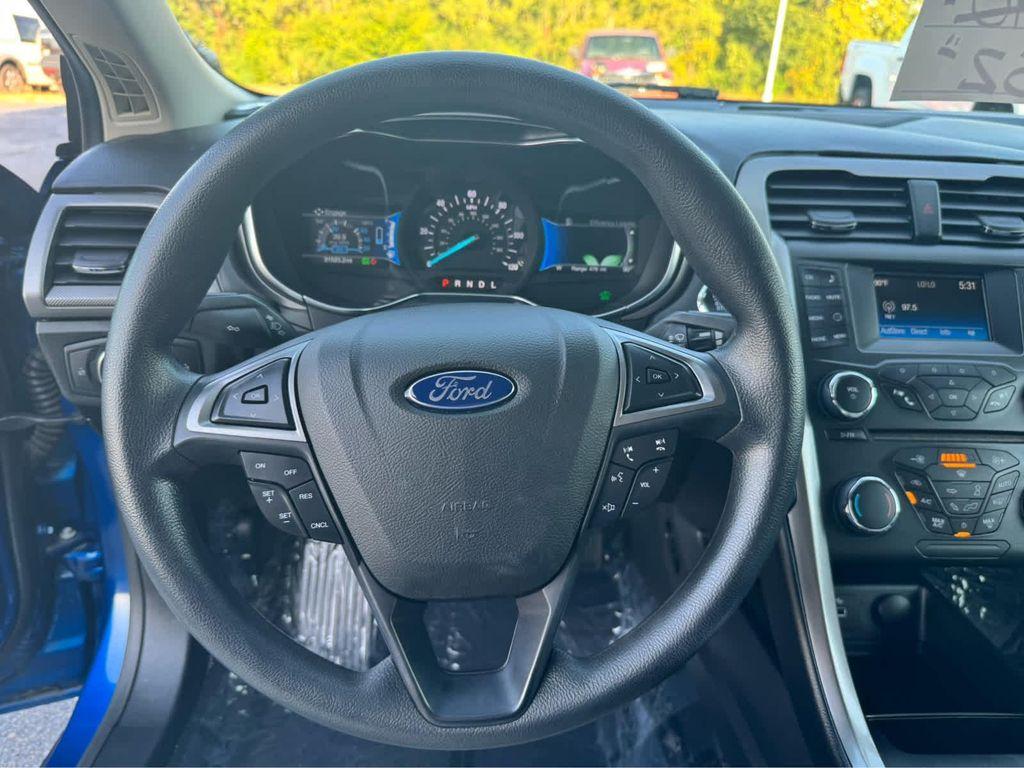 AM/FM/iPod/MP3/CD/BT/Aux, Back-Up Camera, Onboard Communications System, Alloy Wheels, Keyless Start, Dual Zone A/C, Smart Device Integration, Brake Actuated Limited Slip Differential, Keyless Entry, Remote Trunk Release, Child Safety Locks, Steering Wheel Controls, Cruise Control, 4-Wheel ABS Disc Brakes, Traction/Stability Controls, Power Mirrors, Power Windows, Rear Defrost, Power Door Locks. Ford Hybrid S with Lightning Blue exterior and Medium Light Stone interior features a 4 Cylinder Engine with 188 HP at 6000 RPM*.