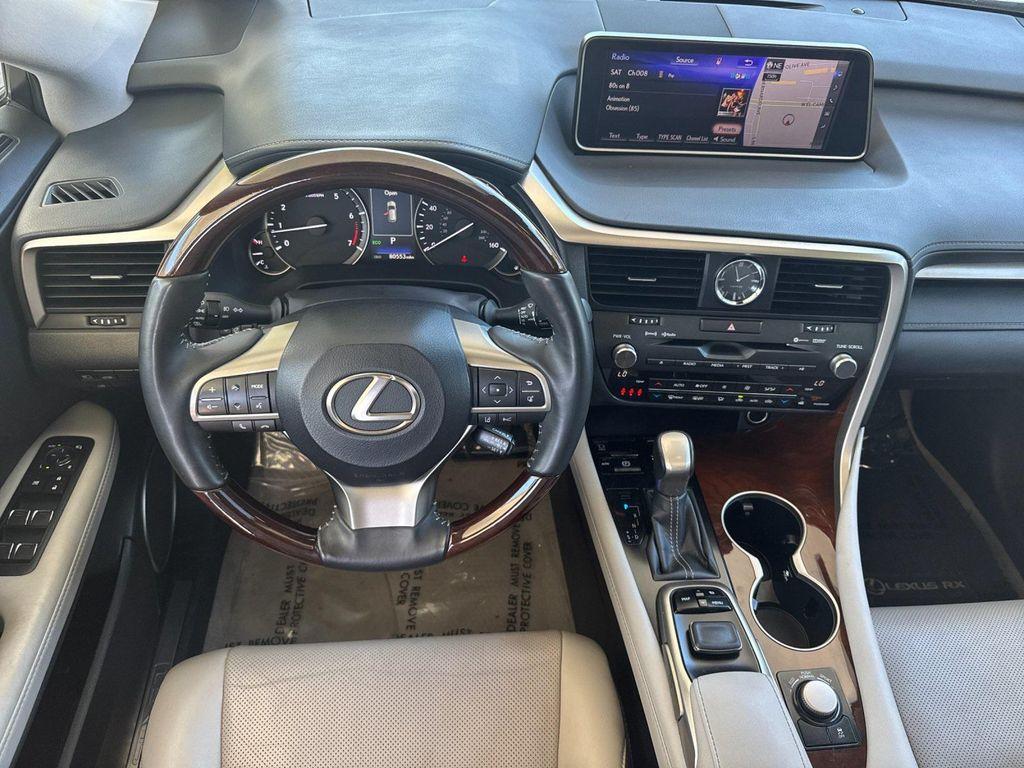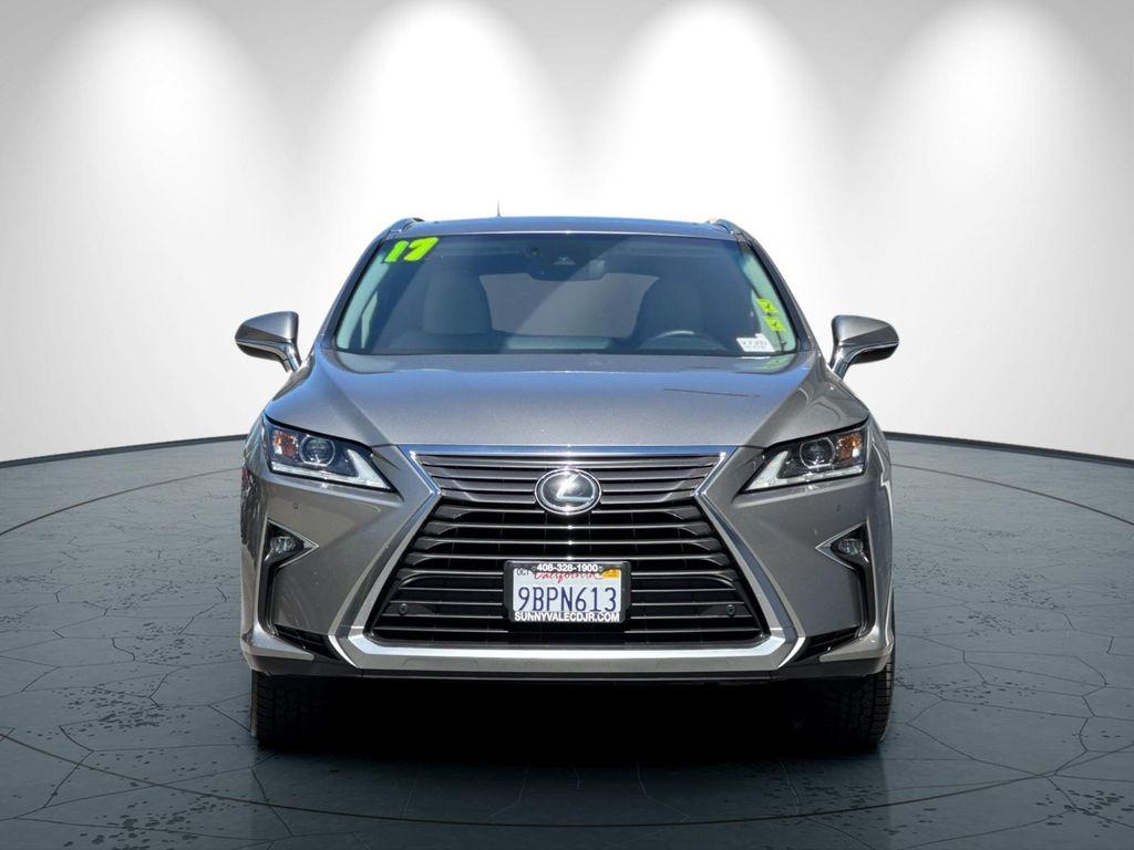 20/27 City/Highway MPGClean CARFAX.Lane Change Assist, Kessy Keyless Access (doors & liftgate) w/ Push-Button Start, Remote Power Liftgate, Blind Spot Monitor w/ Rear Traffic Alert, Adaptive Cruise Control (ACC) Stop & Go, Park Distance Control, front & rear, Super Clean, 3.329 Axle Ratio, 8'' Navigation System w/Mark Levinson Audio, ABS brakes, Active Cruise Control, Alloy wheels, Auto High-beam Headlights, Backup Monitor, Blind Spot Monitor w/Rear Cross Traffic Alert, Brake assist, Compass, Delay-off headlights, Electronic Stability Control, Exterior Parking Camera Rear, Front Bucket Seats, Front dual zone A/C, Fully automatic headlights, Heated & Ventilated Front Seats, Heated door mirrors, Heated Front Seats, Heated Leather Steering Wheel, Illuminated entry, Leather Seat Trim, Leather steering wheel, Low tire pressure warning, Navigation System, NuLuxe Seat Trim, Panic alarm, Panoramic View Monitor w/Blind Spot Monitor, Power Liftgate, Power Tilt & Slide Moonroof, Radio: AM/FM/CD Lexus Display Audio, Remote keyless entry, Security system, Semi-Aniline Leather Seat Trim, Single-Disc DVD Changer, Split folding rear seat, Traction control, Wheels: 18'' x 8'' 7-Spoke Aluminum.Silver 2017 Lexus RX 350 FWD 8-Speed Automatic 3.5L V6 DOHC 24VFor more information, please contact us at (408) 328-1900 or go to our website, www.sunnyvalecdjr.com/ Awards: * 2017 KBB.com Best Resale Value Awards * 2017 KBB.com 10 Best Luxury SUVs * 2017 KBB.com Brand Image Awards