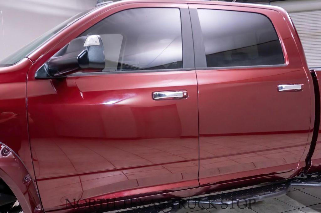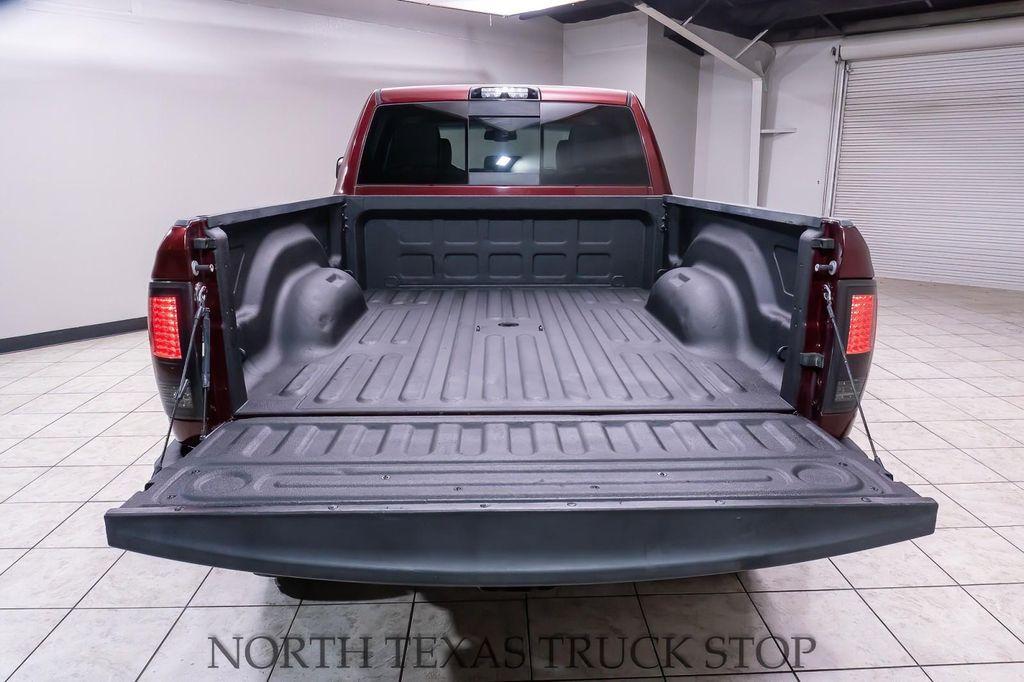 Finished in Delmonico Red Pearlcoat over a Black leather interior, this Ram stands tall with the Lone Star Quick Order Package and Luxury Group that add heated seats, heated steering wheel, LED bed lighting, and power-folding trailer tow mirrors. The Chrome Tubular Side Steps and polished 18-inch aluminum wheels finish off a clean, confident look thats all Texas.