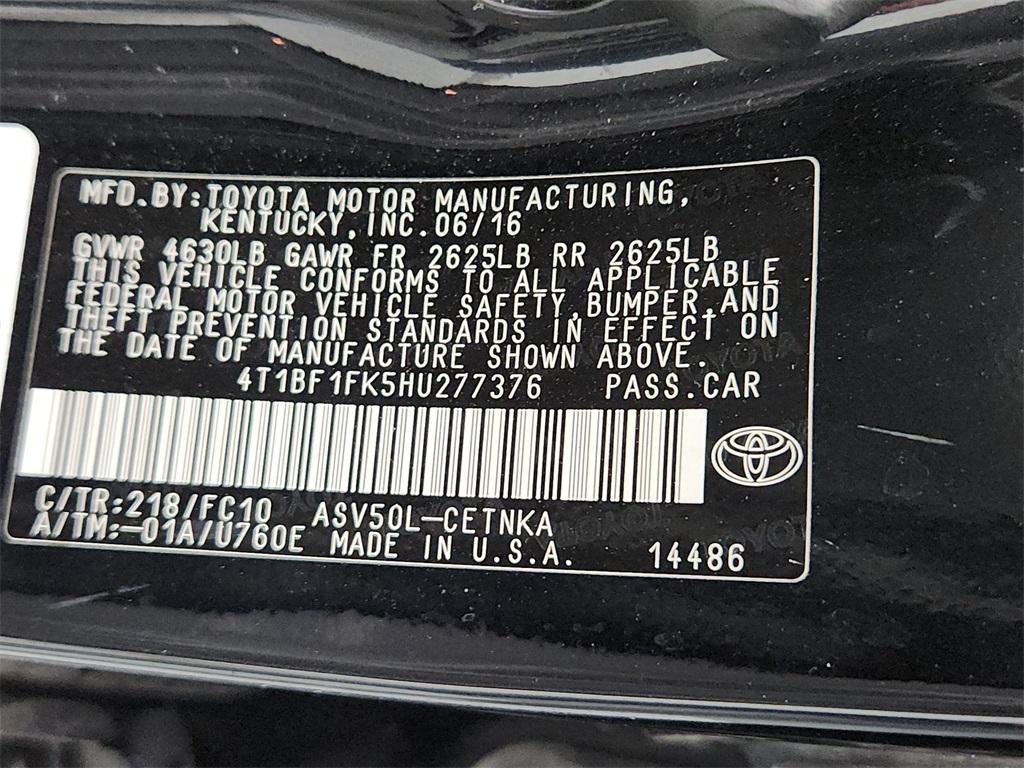 ((** 2017 TOYOTA CAMRY XLE**CLEAN CARFAX**ONE OWNER**SCOTTSDALE TRADE**)) CARFAX One-Owner. Clean CARFAX. Black 2017 Toyota Camry XLE FWD 6-Speed Automatic 2.5L I4 SMPI DOHC 24/33 City/Highway MPG 4-Wheel Disc Brakes Automatic temperature control Dual front side impact airbags Exterior Parking Camera Rear Front dual zone A/C Heated door mirrors Leather Seat Trim Leather steering wheel Low tire pressure warning Multi-Stage Heated Front Bucket Seats Overhead airbag Passenger vanity mirror Power door mirrors Power passenger seat Power steering Power windows Radio: Entune Audio Plus w/Connected Nav/JBL Audio Rear seat center armrest Rear window defroster Remote keyless entry Split folding rear seat Telescoping steering wheel Variably intermittent wipers. The general guidelines for these vehicles are: ⢠They all come with an Used Car Inspection and we encourage you to look at it so you know what it will need. ⢠They are sold 100% AS-IS without any warranty coverage by us. ⢠They are sold with our wholesale price posted no negotiation necessary. ⢠They are offered for a limited time only - up to 30 days. We've given you a head start for the fixer upper you choose: ⢠3 Complimentary Oil Changes and Tire Rotations. ⢠3 Day - 300 miles Exchange Guarantee. ⢠3 Month - 3000-mile 3rd party Powertrain Warranty. ⢠Emissions Oil Change and Safety Inspection on us a $500 value! Advertised prices are subject to tax title license registration $998 dealer documentary fee and finance charges. Most vehicles are subject to reconditioning fees and costs for dealer installed accessories. These fees and costs are not included in the advertised price. Second key floor mats or owner's manual may not be available on all pre-owned vehicles. While every reasonable effort is made to ensure the accuracy of this data we are not responsible for any errors or omissions contained on these pages. Prices subject to change. Vehicles are subject to prior sale.