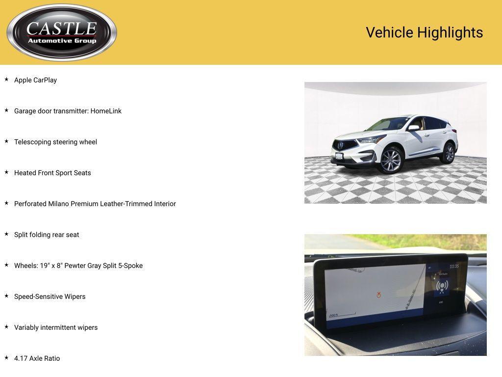 2019 Acura RDX Technology Package SH-AWD AWD, 12 Speakers, 4.17 Axle Ratio, Apple CarPlay, Auto High-beam Headlights, Automatic temperature control, Brake assist, Electronic Stability Control, Emergency communication system: AcuraLink, Exterior Parking Camera Rear, Front dual zone A/C, Fully automatic headlights, Garage door transmitter: HomeLink, Heated door mirrors, Heated Front Sport Seats, Lane departure: Lane Keeping Assist System (LKAS) active, Memory seat, Navigation system: Acura Navigation System with Voice Recognition, Perforated Milano Premium Leather-Trimmed Interior, Power driver seat, Power Liftgate, Power moonroof, Premium audio system: ELS Studio, Remote keyless entry, Security system, Speed-Sensitive Wipers, Split folding rear seat, Steering wheel mounted audio controls, Telescoping steering wheel, Tilt steering wheel, Traction control, Turn signal indicator mirrors, Variably intermittent wipers, Wheels: 19'' x 8'' Pewter Gray Split 5-Spoke.21/27 City/Highway MPGFIND OUT WHY WE HAVE A 4.5 GOOGLE RATING AND WHY WE HAVE OVER 10,000 REVIEWS ONLINE!!! NO HOOKS NO GIMMICKS EVERYONE QUALIFIES FOR THIS PRICE. Buyer is responsible for Tax, Title, License and Doc Fee of $367.70. All advertised vehicles are subject to actual dealer availability. Options and pricing are subject to change. We are not liable for pricing errors. See dealer for details.Awards: * 2019 KBB.com Brand Image AwardsFor more information, visit www.kbb.com. Kelley Blue Book is a registered trademark of Kelley Blue Book Co., Inc.