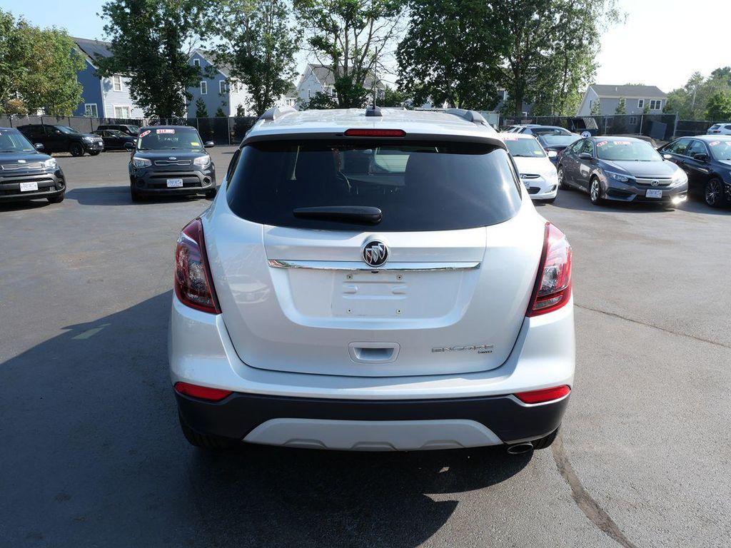 The 2019 Buick Encore AWD 4dr Preferred in Quicksilver Metallic is a striking blend of style and practicality. The sleek exterior is complemented by the modern touch of the 18-inch (45.7 cm) 5-spoke midnight silver aluminum wheels. Equipped with a power tilt-sliding moonroof, this SUV offers a luxurious open-air driving experience. Inside, the Encore's Ebony interior provides a sophisticated and comfortable environment. The cabin is tastefully illuminated by a front footwell and cup holder lighting kit, enhancing the overall ambiance for passengers. Keyless entry ensures convenient access, while advanced telematics offer seamless connectivity and integration with your devices. This model's 1.4L 4-cylinder engine, combined with its All Wheel Drive drivetrain, ensures excellent maneuverability and performance in a variety of conditions. The Encore includes a safety package designed to keep you secure on the road, providing peace of mind for driver and passengers alike. With a fusion of elegance and functionality, the 2019 Buick Encore is well-suited for both urban and adventurous journeys.
