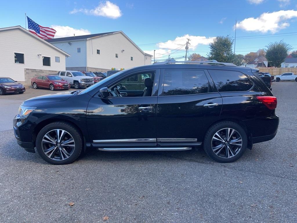 CLEAN 2019 NISSAN PATHFINDER PLATINUM AWD EQUIPPED WITH REMOTE START, POWER SUNROOF, HEATHED LEATHER SEATS, TOUCHSCREN RADIO WITH BLUETOOTH, SIRIUSXM, BACK UP CAMERA, CRUISE CONTROL, STEERING WHEEL AUDIO CONTROLS, AND ALLOY WHEELS. 2019 Magnetic Black Pearl Nissan Pathfinder V6 Platinum This Nissan Pathfinder has many features and is well equipped including, Leather Seats, Heated Seats, Lane Keeping Assist, Touchscreen Controls, Backup Camera, Bluetooth Hands-Free, Power Sunroof / Moonroof, Remote Start, Vehicle has been safety inspected and serviced, Fully Detailed. Odometer is 7764 miles below market average! 19/26 City/Highway MPG **INCLUDED FEATURES & OPTIONS: Nissan Mobile Entertainment System Package (Dual 8 Headrest DVD FES), 13 Speakers, 3rd row seats: bench, 4-Wheel Disc Brakes, 5.25 Axle Ratio, ABS brakes, Air Conditioning, Alloy wheels, AM/FM radio: SiriusXM, AM/FM/CD Audio System, Auto tilt-away steering wheel, Auto-dimming Rear-View mirror, Automatic temperature control, Black Mold-in-Color Splash Guards, Blind Spot Warning, Bodyside moldings, Bose Premium Audio System, Brake assist, Bumpers: body-color, Carpeted Floor Mats (4-pc Set), CD player, Climate Controlled Front Bucket Seats, Cross Bars, Delay-off headlights, Driver door bin, Driver vanity mirror, Dual front impact airbags, Dual front side impact airbags, Electronic Stability Control, Emergency communication system: NissanConnect Services, Four wheel independent suspension, Front anti-roll bar, Front Bucket Seats, Front Center Armrest, Front dual zone A/C, Front fog lights, Front reading lights, Fully automatic headlights, Garage door transmitter: HomeLink, Heated door mirrors, Heated front seats, Heated rear seats, Heated steering wheel, Illuminated entry, Leather Seating Surfaces, Leather Shift Knob, Leather steering wheel, Low tire pressure warning, Memory seat, Navigation System, NissanConnect w/Navigation & Services, Occupant sensing airbag, Outside temperature display, Overhead airbag, Overhead console, Panic alarm, Passenger door bin, Passenger vanity mirror, Power door mirrors, Power driver seat, Power Liftgate, Power moonroof, Power passenger seat, Power steering, Power windows, Radio data system, Rear air conditioning, Rear anti-roll bar, Rear Bumper Protector, Rear Parking Sensors, Rear reading lights, Rear seat center armrest, Rear window defroster, Rear window wiper, Reclining 3rd row seat, Remote keyless entry, Roof rack: rails only, Running Boards, Security system, SiriusXM Traffic, Speed control, Speed-sensing steering, Speed-Sensitive Wipers, Split folding rear seat, Spoiler, Steering wheel memory, Steering wheel mounted audio controls, Tachometer, Telescoping steering wheel, Tilt steering wheel, Traction control, Trip computer, Turn signal indicator mirrors, Variably intermittent wipers, Ventilated front seats, and Wheels: 20 x 7.5 J Machined Aluminum-Alloy. Thank you for taking the time to look at this gorgeous 2019 Nissan Pathfinder. Preston Superstor