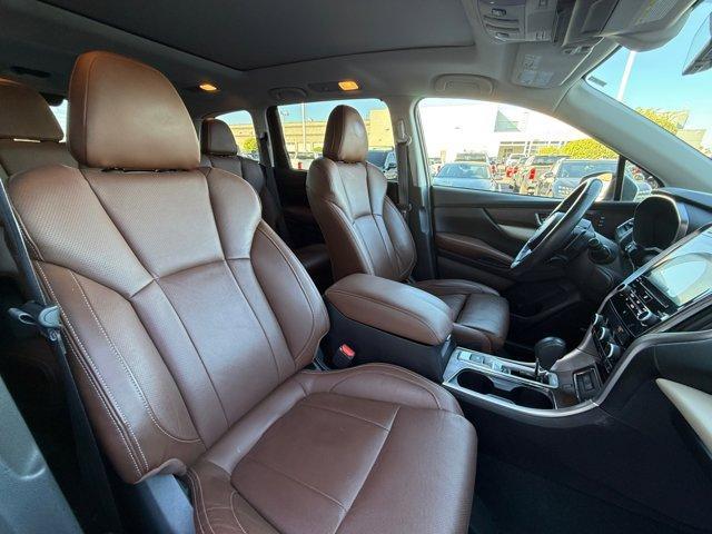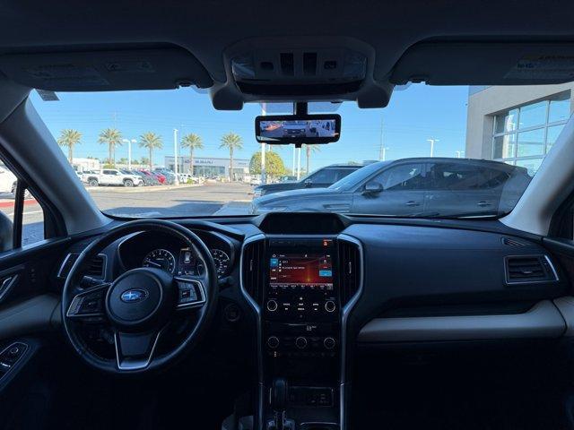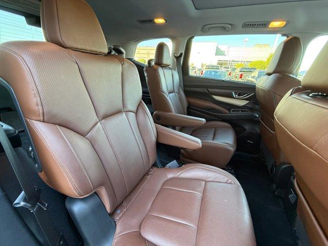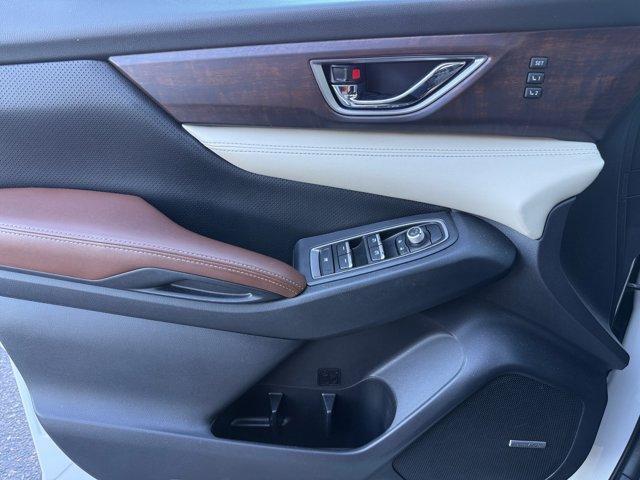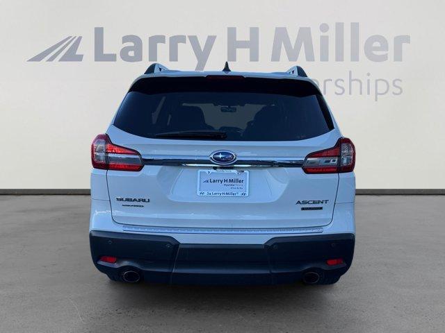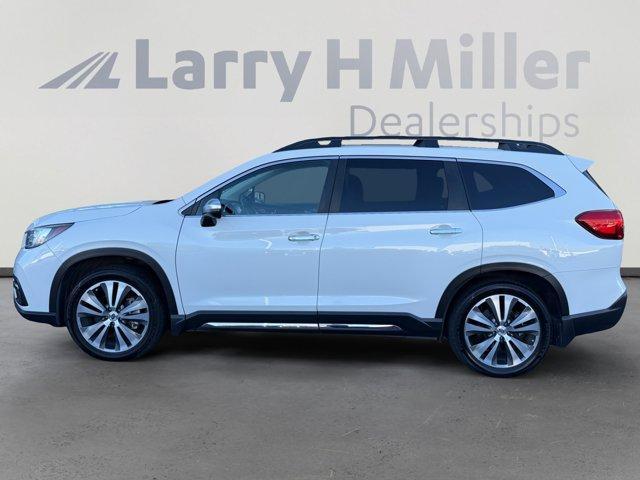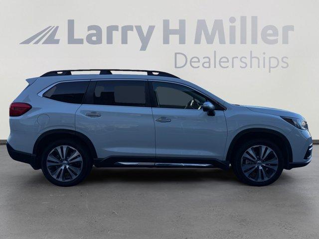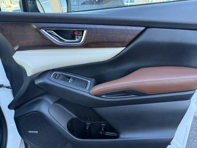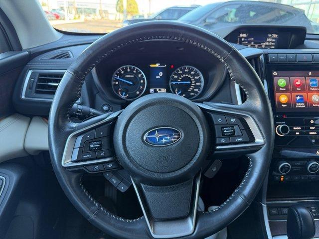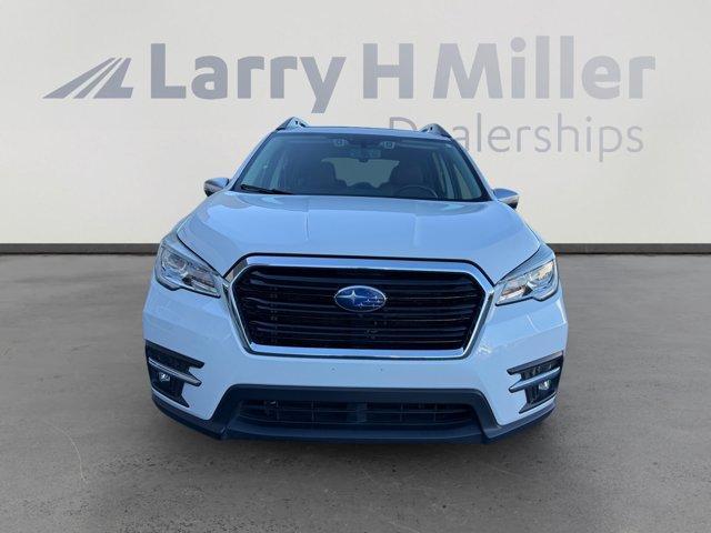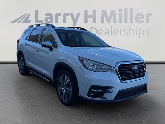 This 2019 Crystal White Pearl Subaru Ascent Touring AWD is well equipped and includes these features and benefits: Standard Model, 14 Speakers, 20 Alloy Wheels, 3rd row seats: bench, 4-Wheel Disc Brakes, ABS brakes, Air Conditioning, All-Weather Floor Liners, Alloy wheels, AM/FM radio: SiriusXM, Auto High-beam Headlights, Auto-dimming Rear-View mirror, Automatic temperature control, Axle Ratio: 4.44, Brake assist, Bumpers: body-color, Cargo Net, Cargo Tray, CD player, Compass, Delay-off headlights, Driver door bin, Driver vanity mirror, Dual front impact airbags, Dual front side impact airbags, Electronic Stability Control, Emergency communication system: STARLINK Safety and Security, Exterior Parking Camera Rear, Four wheel independent suspension, Front anti-roll bar, Front Bucket Seats, Front Center Armrest, Front dual zone A/C, Front fog lights, Front reading lights, Fully automatic headlights, Garage door transmitter: HomeLink, harman/kardon® Speakers, Heated & Ventilated Front Bucket Seats, Heated door mirrors, Heated front seats, Heated rear seats, Heated steering wheel, Illuminated entry, Knee airbag, Low tire pressure warning, Memory seat, Navigation System, Occupant sensing airbag, Outside temperature display, Overhead airbag, Overhead console, Panic alarm, Passenger door bin, Passenger vanity mirror, Perforated Leather-Trimmed Upholstery, Power door mirrors, Power driver seat, Power Liftgate, Power moonroof, Power passenger seat, Power steering, Power windows, Radio data system, Radio: Subaru STARLINK 8.0 Multimedia Nav System, Rain sensing wipers, Rear air conditioning, Rear anti-roll bar, Rear Bumper Cover, Rear reading lights, Rear window defroster, Rear window wiper, Remote keyless entry, Roof rack: rails only, Security system, Speed control, Splash Guards, Split folding rear seat, Spoiler, STARLINK/Apple CarPlay/Android Auto, Steering wheel mounted audio controls, Tachometer, Telescoping steering wheel, Tilt steering wheel, Traction control, Trailer Hitch, Trip computer, Turn signal indicator mirrors, Variably intermittent wipers, and Ventilated front seats. 14 Speakers, 20 Alloy Wheels, 3rd row seats: bench, 4-Wheel Disc Brakes, ABS brakes, Air Conditioning, All-Weather Floor Liners, Alloy wheels, AM/FM radio: SiriusXM, Auto High-beam Headlights, Auto-dimming Rear-View mirror, Automatic temperature control, Axle Ratio: 4.44, Brake assist, Bumpers: body-color, Cargo Net, Cargo Tray, CD player, Compass, Delay-off headlights, Driver door bin, Driver vanity mirror, Dual front impact airbags, Dual front side impact airbags, Electronic Stability Control, Emergency communication system: STARLINK Safety and Security, Exterior Parking Camera Rear, Four wheel independent suspension, Front anti-roll bar, Front Bucket Seats, Front Center Armrest, Front dual zone A/C, Front fog lights, Front reading lights, Fully automatic headlights, Garage door transmitter: HomeLink, harman/kardon® Speakers, Heated & Ventilated Front Bucket Seats, Heated d