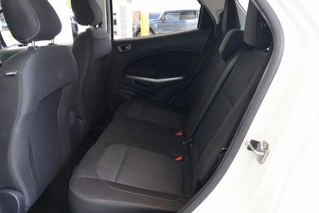 2020 Ford EcoSport SE Diamond White SE EcoBoost 1.0L I3 GTDi DOHC Turbocharged VCT FWD CARFAX One-Owner. Odometer is 11016 miles below market average! Although every reasonable effort has been made to ensure the accuracy of the information contained on this site, absolute accuracy cannot be guaranteed. Specifications, features, safety and warranty data are based on what is available as standard specs/features per trim level, for the designated model-year, and may not apply to vehicles with added packages or options. See dealer for written warranty information. Dealer makes no guarantees or warranties, either expressly or implied, with respect to the accuracy of any data listed on this page which was obtained from third party sources. All vehicles are subject to prior sale. Prices include all eligible factory rebates to dealer. Prices do not include upfits, plows, or other accessories. Price does not include applicable tax, title, license, processing and/or documentation fees, and any emissions testing charges. Doc fees vary by state (Rhode Island $399, Massachusetts $499, Connecticut $599, New York $175, Illinois $367.70, Florida $995 doc fee and $169 electronic filing fee, Pennsylvania $422, Missouri $499.99, New Jersey $795). Price and availability subject to change. Manufacturer's Suggested Retail Price (MSRP) is listed for customer information and customer comparison purposes only, and the actual sales price may vary depending on changing market conditions and other factors. Any information contained on this page should be used for informational purposes only. All vehicles may not be physically located at this dealership but may be available for delivery through this location. Please contact the dealership for more specific information. You Will Be Satisfied.