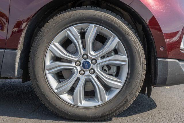 2020 Ford Edge Titanium Burgundy AWD 8-Speed Automatic EcoBoost 2.0L I4 GTDi DOHC Turbocharged VCT 21/28 City/Highway MPG Odometer is 7187 miles below market average!AWD. Class II Trailer Tow Package, Equipment Group 301A (Adaptive Cruise Control w/Stop Go, Adaptive LED Headlamps, Auto-Dimming Driver's Sideview Mirror, Enhanced Active Park Assist, Evasive Steering Assist, Front 180-Degree Camera w/Split View Washer, Heated Rear Seats, Lane Centering, Leather-Trimmed Heated/Cooled Sport Bucket Seats, Panoramic Vista Roof, SiriusXM Traffic Travel Link, and Voice-Activated Touchscreen Navigation System), AWD, 12 Speakers, 3.80 Axle Ratio, 4-Wheel Disc Brakes, ABS brakes, Air Conditioning, Alloy wheels, AM/FM radio: SiriusXM, Auto High-beam Headlights, Auto tilt-away steering wheel, Auto-dimming Rear-View mirror, Automatic temperature control, Brake assist, Bumpers: body-color, Compass, Delay-off headlights, Driver door bin, Driver vanity mirror, Dual front impact airbags, Dual front side impact airbags, Electronic Stability Control, Emergency communication system: SYNC 3 911 Assist, FordPass Connect, Four wheel independent suspension, Front anti-roll bar, Front Bucket Seats, Front Center Armrest w/Storage, Front dual zone A/C, Front fog lights, Front reading lights, Fully automatic headlights, Garage door transmitter, Heated door mirrors, Heated front seats, Heated steering wheel, Illuminated entry, Knee airbag, Leather-Trimmed Heated Sport Bucket Seats, Low tire pressure warning, Memory seat, Occupant sensing airbag, Outside temperature display, Overhead airbag, Overhead console, Panic alarm, Passenger door bin, Passenger vanity mirror, Power door mirrors, Power driver seat, Power Liftgate, Power passenger seat, Power steering, Power windows, Radio: B O Sound System by Bang Olufsen, Rain sensing wipers, Rear anti-roll bar, Rear reading lights, Rear seat center armrest, Rear window defroster, Rear window wiper, Remote keyless entry, Roof rack: rails only, Security system, SiriusXM Radio, Speed control, Speed-Sensitive Wipers, Split folding rear seat, Spoiler, Steering wheel memory, Steering wheel mounted audio controls, SYNC 3 Communications Entertainment System, Tachometer, Telescoping steering wheel, Tilt steering wheel, Traction control, Trip computer, Turn signal indicator mirrors, Variably intermittent wipers, and Wheels: 19 Luster Nickel-Painted Aluminum.We are your House of Good Service!!! Please contact us for more information or to schedule a test drive today. www.hirningauto.com #GMCSierra1500.